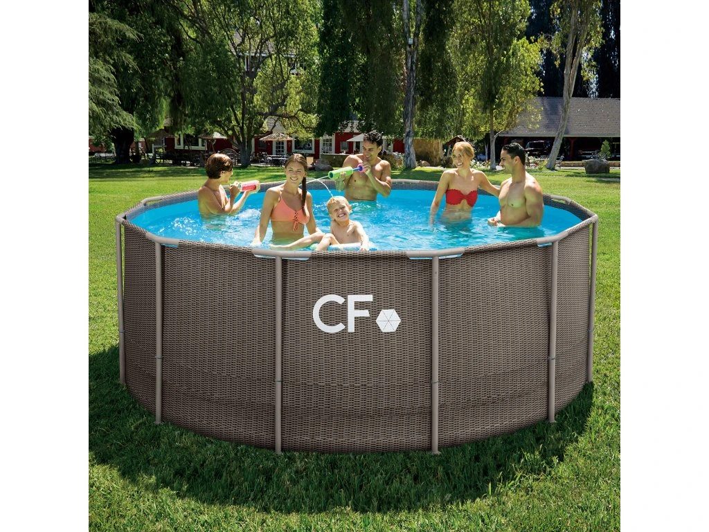 Bazén CF FRAME 366 x 132 cm je rámový nadzemní bazén pro zákazníky, kteří chtějí pohodlné koupání s vyšší hladinou vody a výrazně stabilnější konstrukci. Výška 132 cm přináší plavecký komfort, větší objem vody a příjemnější používání i pro dospělé.
