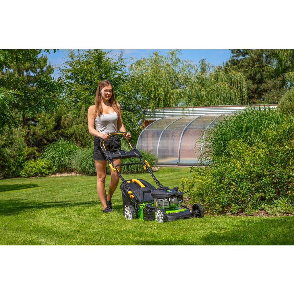 Benzínová sekačka je vybavena čtyřtaktním motorem DUCAR OHV o objemu 150 cm³ a šířka záběru 46 cm ji předurčuje pro použití na zahradách o velikosti až 1 200 m². Disponuje elektrickým startérem, který umožňuje spustit sekačku pouhým stisknutím tlačítka.
