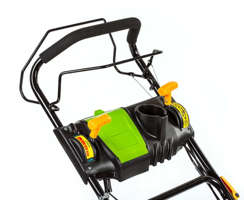 | Funkce | Centrální nastavení výšky , Mulčování , Boční výhoz , Kuličková ložiska , Nastavení výšky rukojeti , Manuální start , Nastavitelná rychlost pojezdu , Ukazatel plnosti koše |
