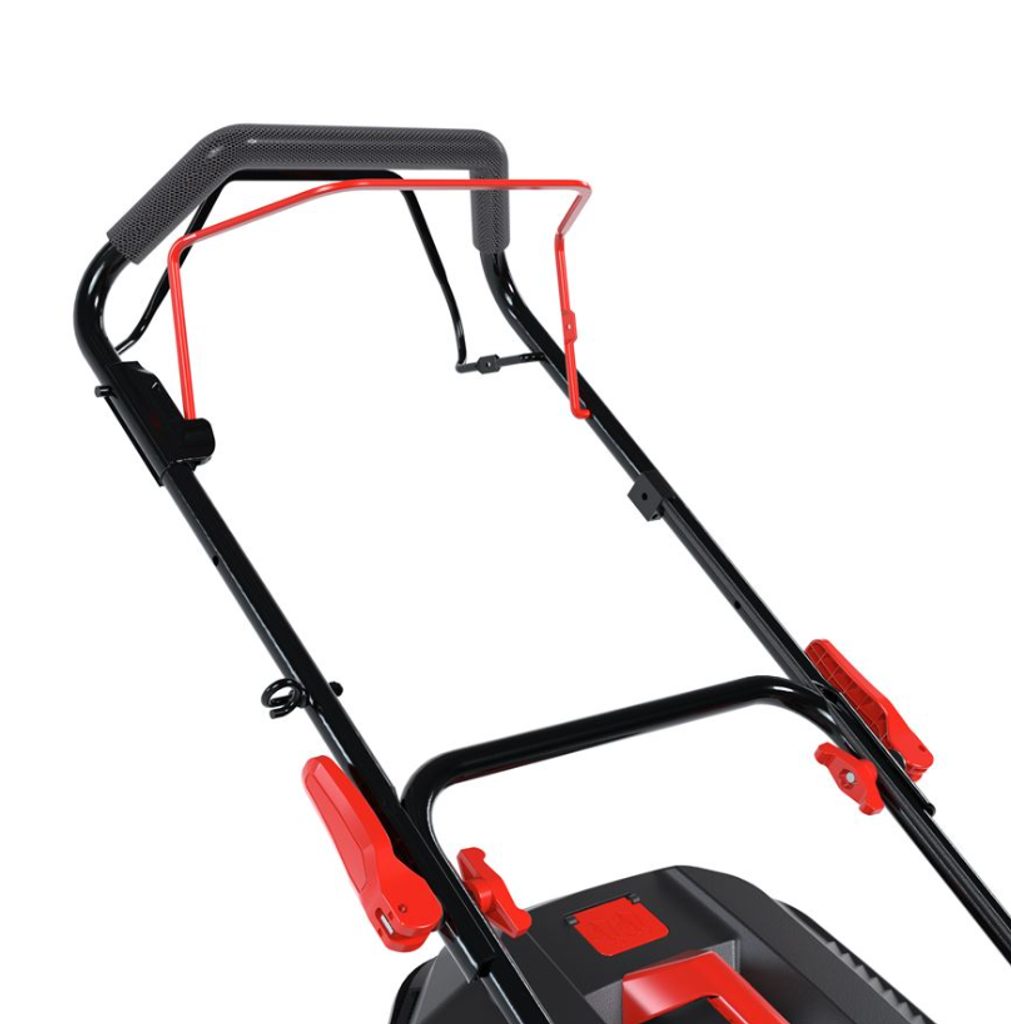 Výškově nastavitelná řídící rukojeť a velká pojezdová kola zvyšují komfort při práci. Centrální, 7stupňové nastavení výšky sečení vám umožní přesně přizpůsobit výšku trávníku podle aktuální potřeby.