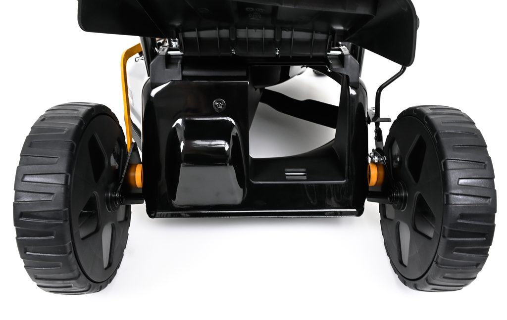 Lehká konstrukce pro velmi snadnou manipulaci se strojem. Přední i zadní kola o dostatečném průměru zajišťují pohodlnou jízdu i na nerovném povrchu a přispívají ke snadné manévrovatelnosti stroje.