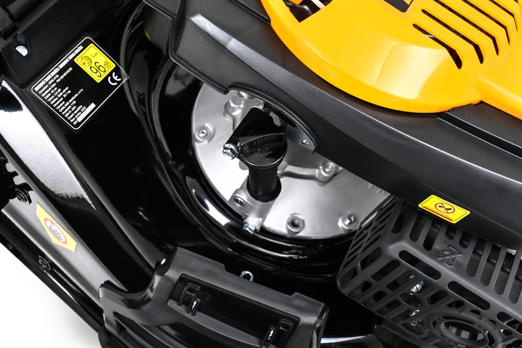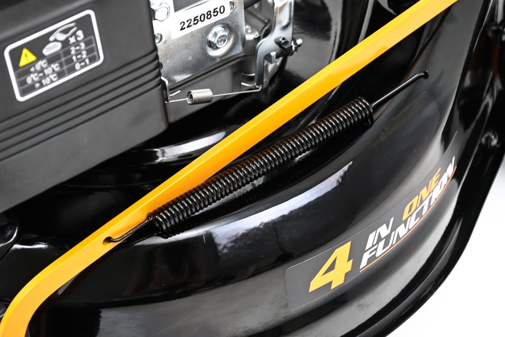 Funkce 4v1: sběr do koše, mulčování, zadní výhoz, boční výhoz mulčovací záslepka i boční deflektor součástí dodávky. Primer - nastřikovač paliva pro snadný start.
