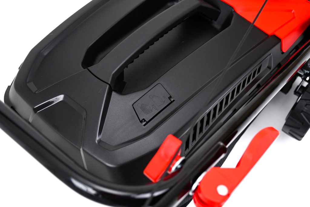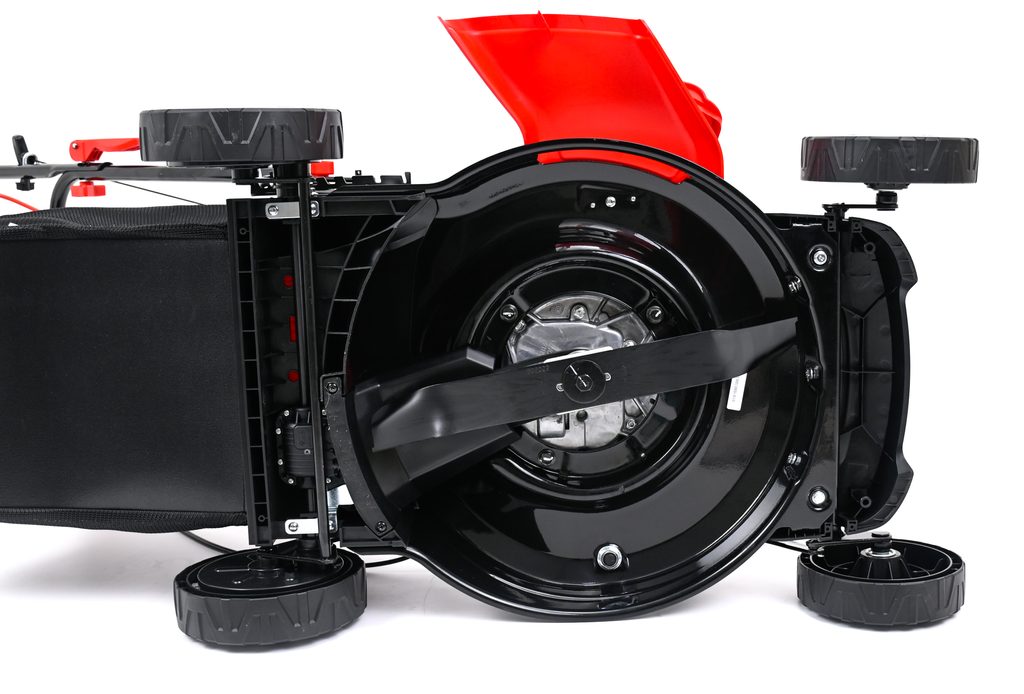 | Funkce | Centrální nastavení výšky , Mulčování , Boční výhoz , Kuličková ložiska , Manuální start , Ukazatel plnosti koše |