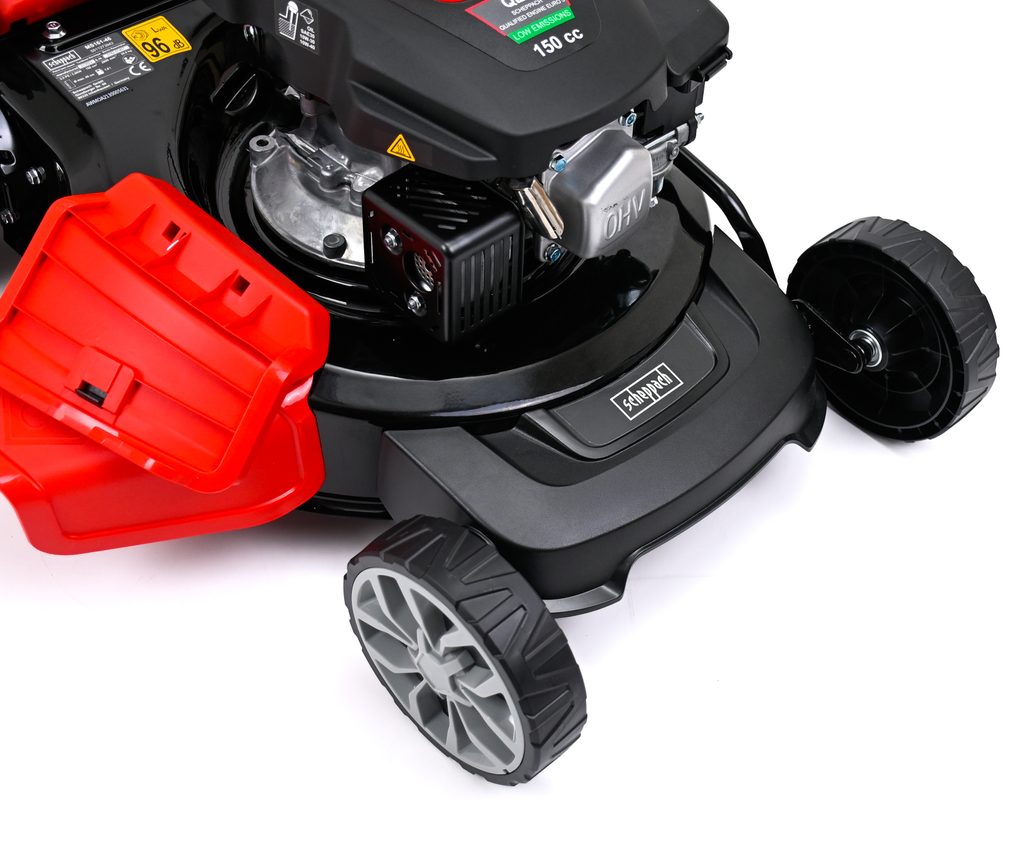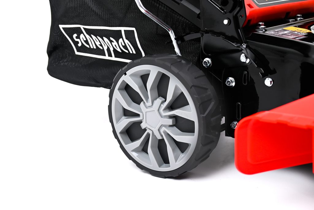 Benzínová sekačka Scheppach MS 161-46 je ideální stroj pro menší až středně velké pozemky. Je navržena bez zbytečných příkras, zato se všemi praktickými funkcemi a s ohledem na dlouhou životnost. Základem je, na tuto kategorii, velmi silný motor o objemu 150 ccm, který si dobře poradí i s vyšší nebo vlhčí trávou, popřípadě s trávou s příměsí silnějších a houževnatějších plevelů.