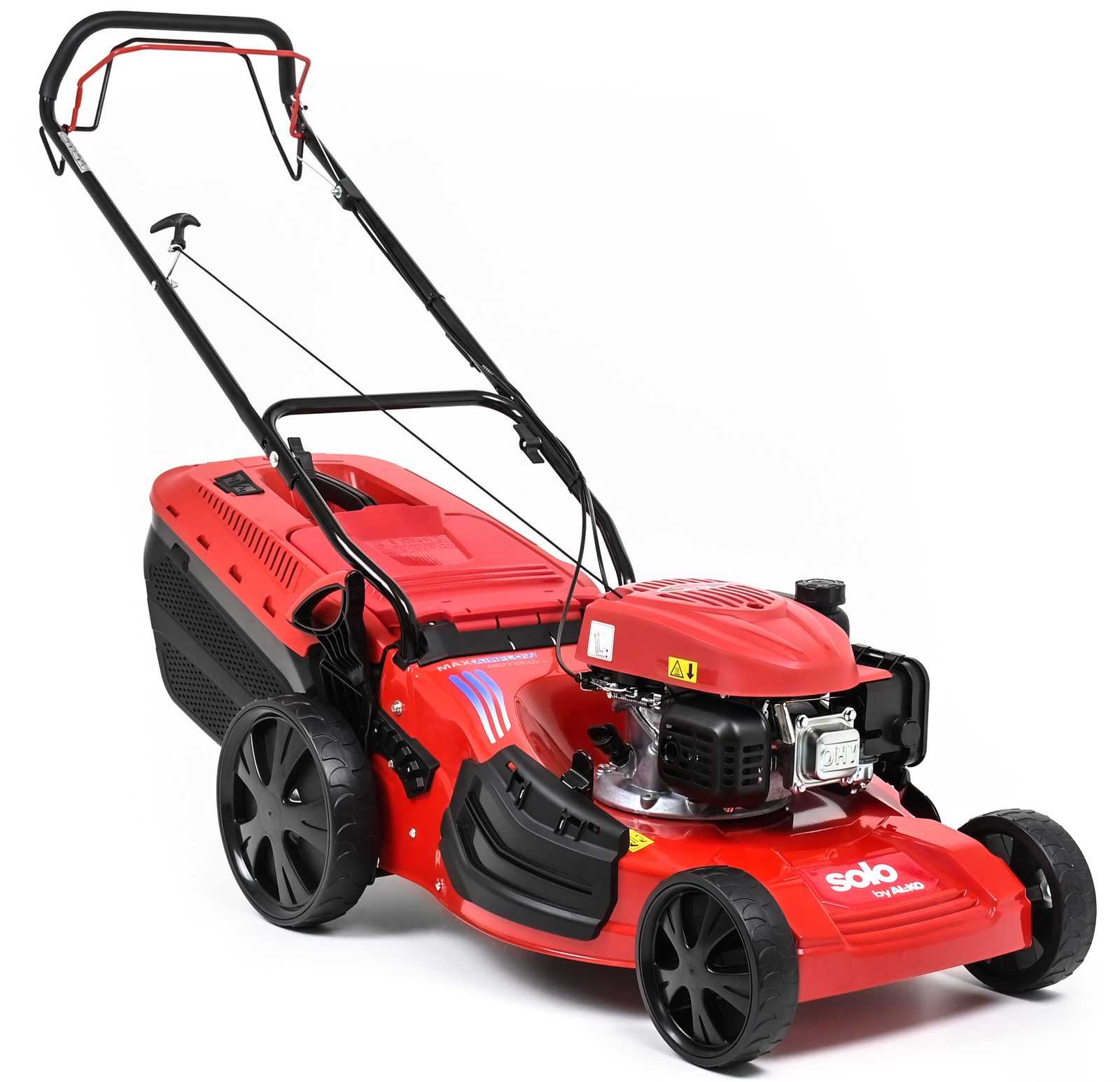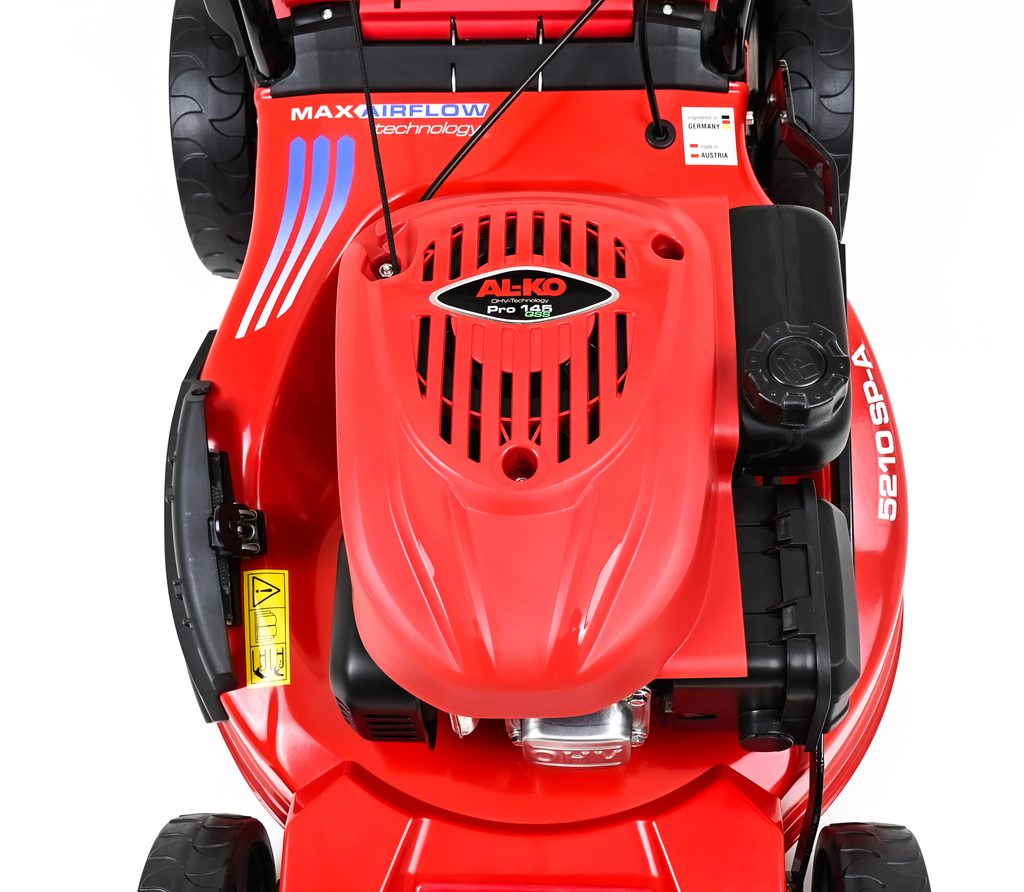 Silný motor AL-KO Pro 2,1 kW s technologií OHV dosahuje díky zpětným ventilům mimořádnou účinnost. Velká kola s kuličkovými ložisky a ergonomicky tvarovaná řídítka zvyšují komfort při ovládání sóla pomocí AL-KO 5210 SP-A.