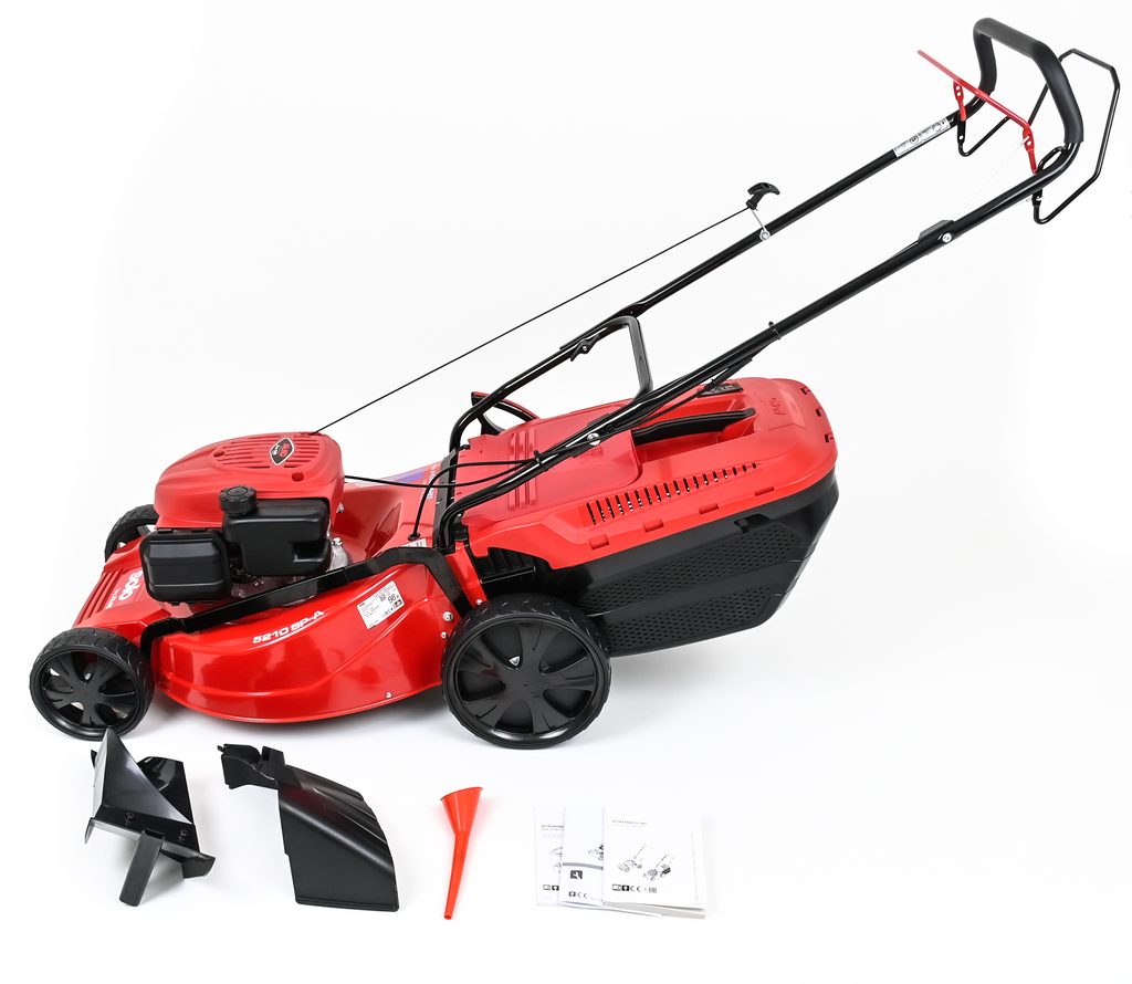 Benzínová sekačka solo by AL-KO 5210 SP-A se šířkou záběru 51 cm je ideálním partnerem pro středně velké zahrady až do cca 1800 m². Výška sečení může být nastavena centrálně do 7 pozic od 30 mm do 80 mm.
