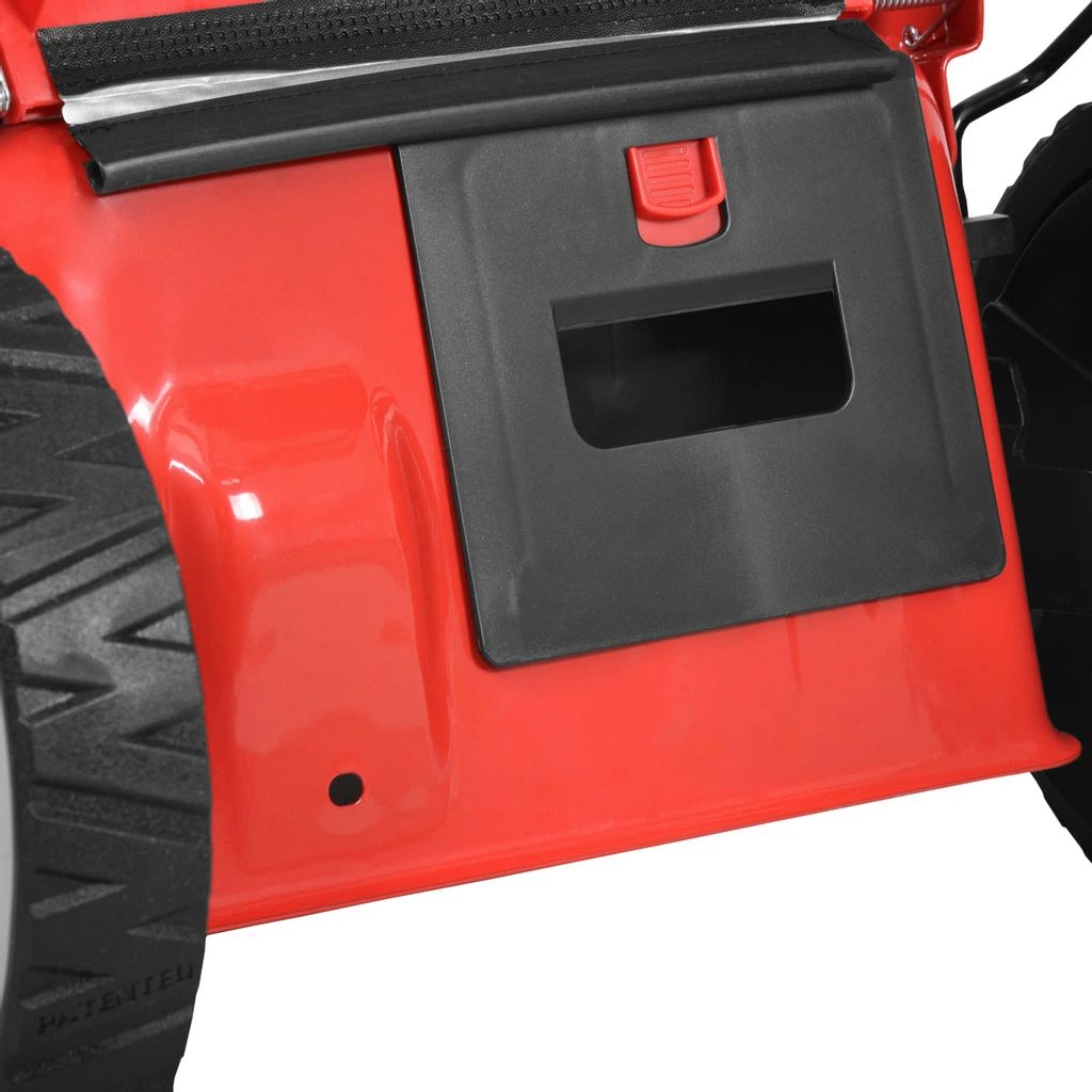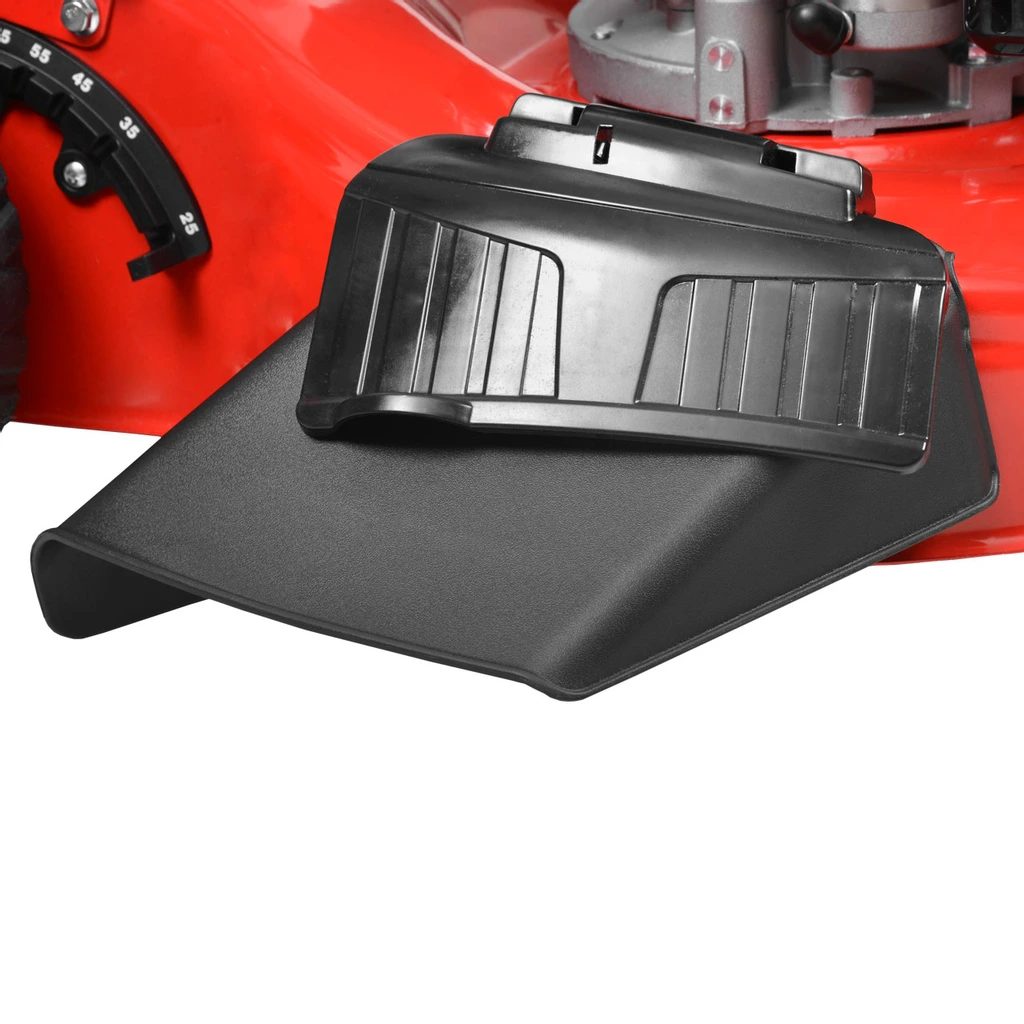 Stabilní a pevné kovové šasi je opatřeno otvorem se záslepkou pro boční výhoz. Součástí dodávky je i kryt bočního výhozu, který umožní sekat trávu v režimu bočního výhozu. Díky tomu je možné sekat i lehce přerostlou trávu, aniž by se sekačka hltila a obsluha šlapala v posekané trávě.