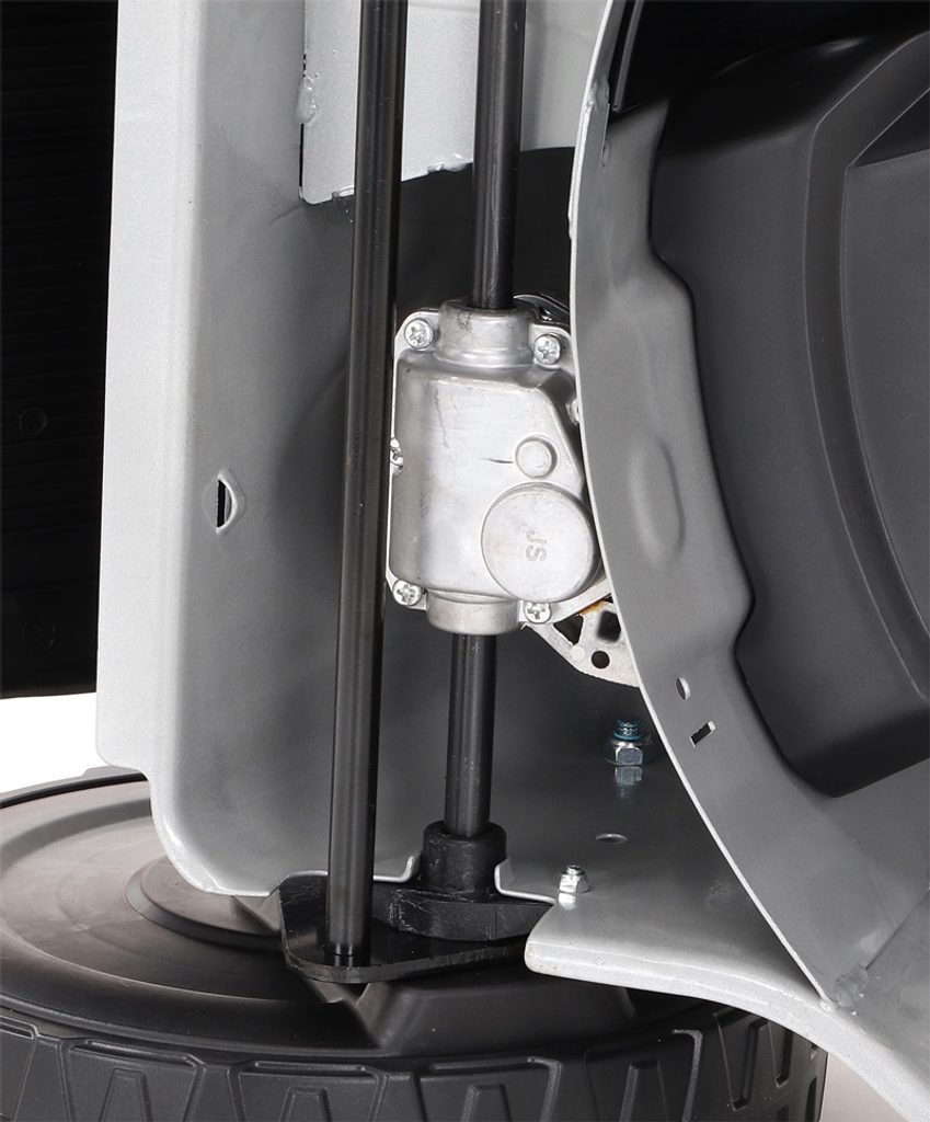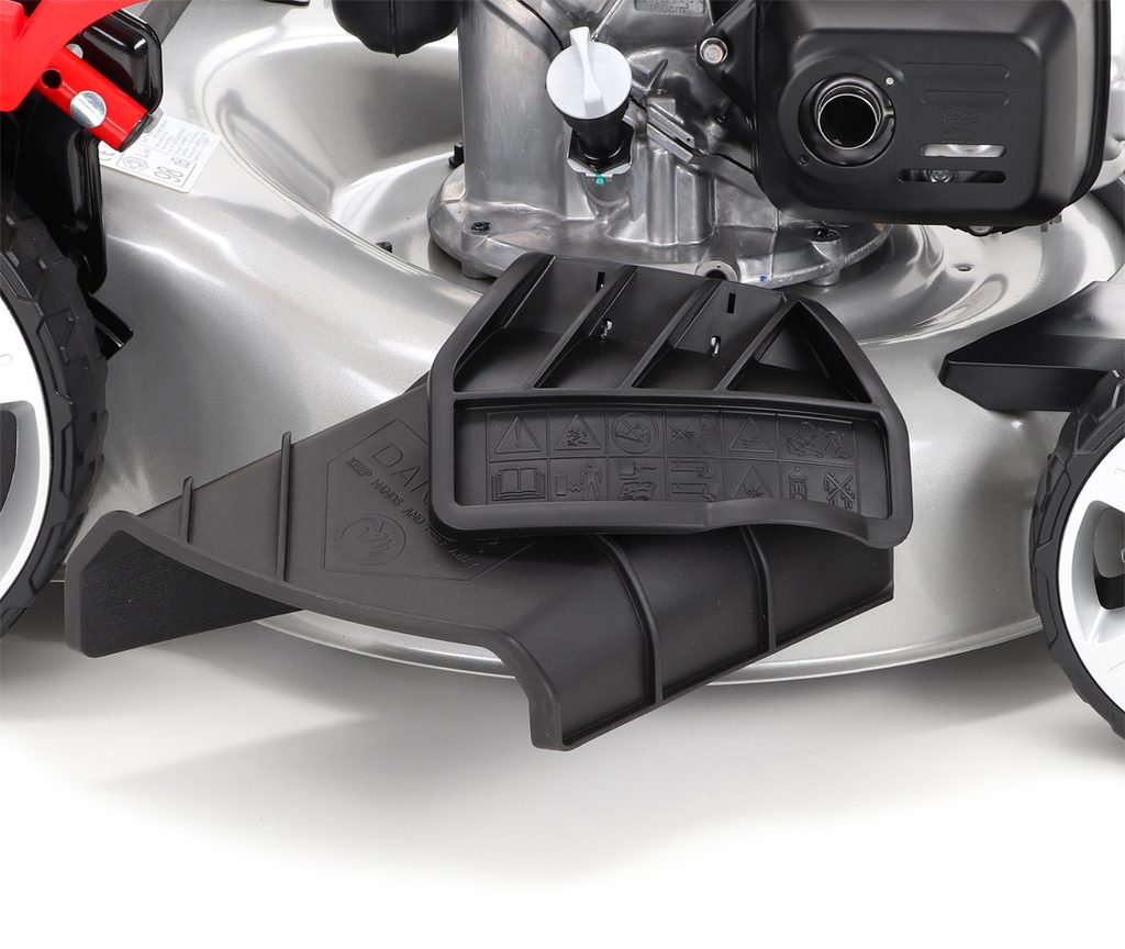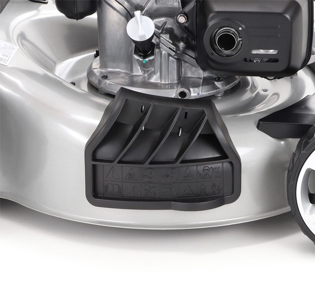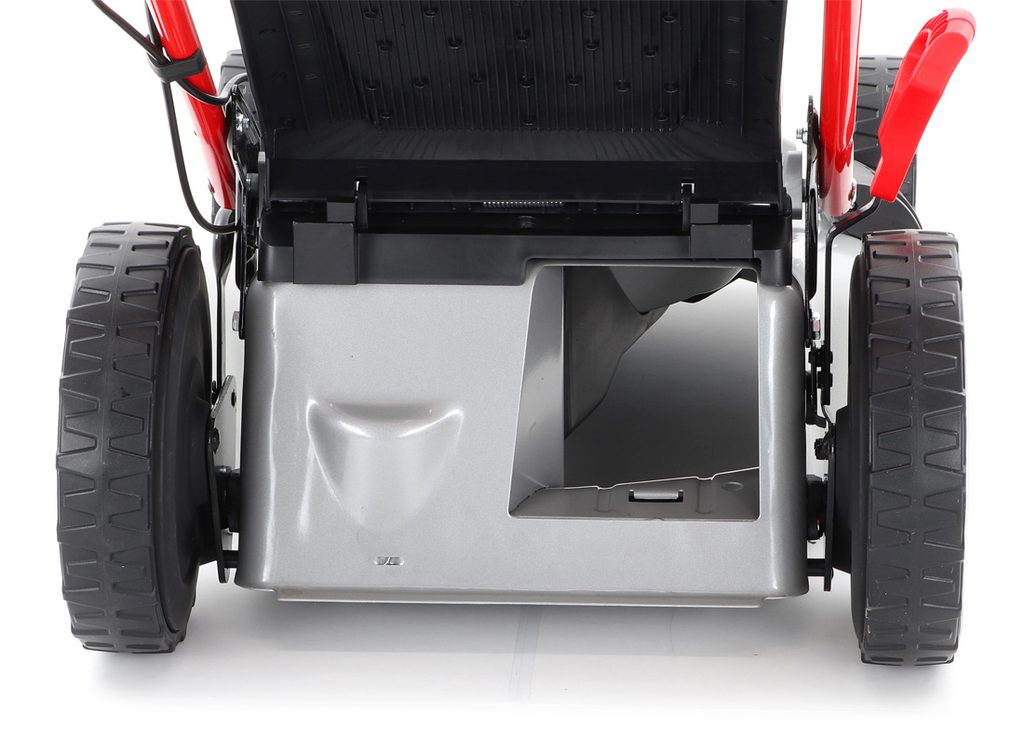 | Funkce | Centrální nastavení výšky , Mulčování , Boční výhoz , Kuličková ložiska , Manuální start , Ukazatel plnosti koše |