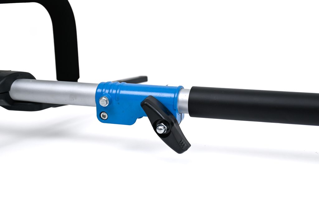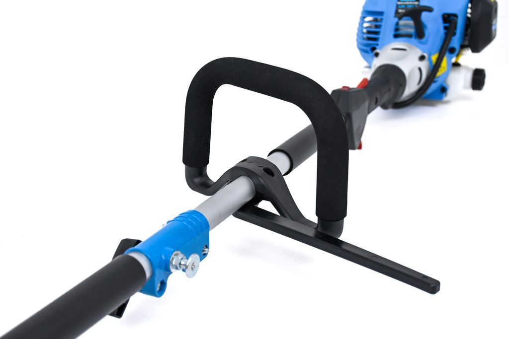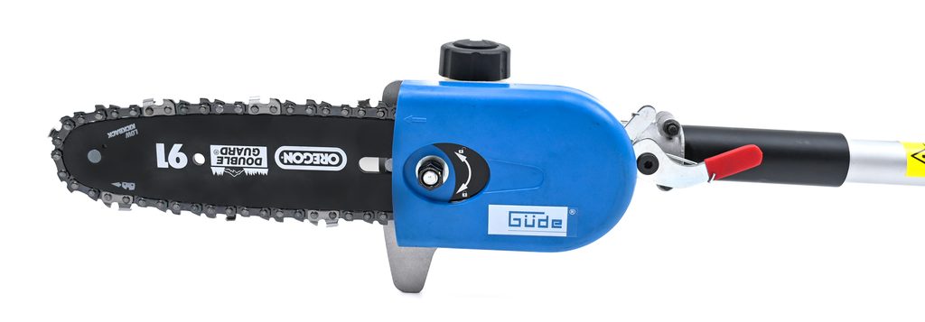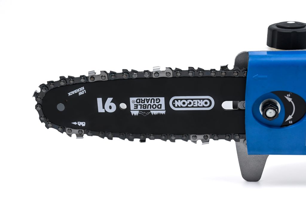 Pila je vybavena tyčovou násadou o délce 2 metry, kterou lze s pomocí vloženého nástavce prodloužit až na 2,7 metru. Řezací hlava je nastavitelná do 4 různých poloh v rozsahu 90°, což usnadňuje práci i v těžko přístupných místech. Pilový řetěz je vybaven automatickým mazáním, což zajišťuje hladký chod a delší životnost řezacího mechanismu.