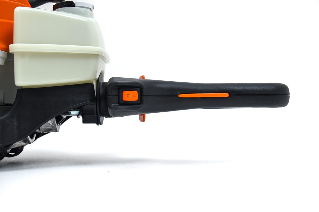 Ovládání nůžek jednou pákou je navrženo pro maximální pohodlí a efektivitu, s ovládacím prvkem, který integruje všechny základní funkce - od sytiče po start a stop. Funkce rychlého stopu zajišťuje, že je motor po přerušení práce okamžitě připraven k dalšímu spuštění.