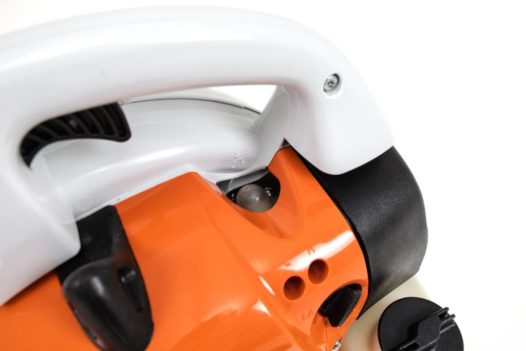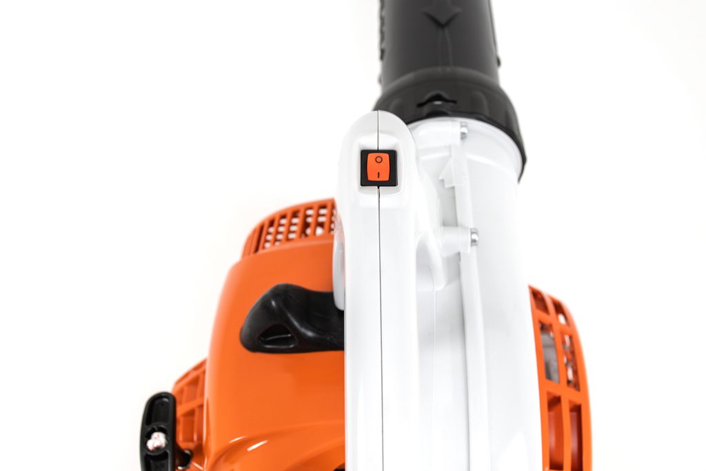 Ergonomicky tvarovaná rukojeť s ovládacími prvky je umístěna nad středem skříně, což umožňuje snadné a komfortní ovládání jednou rukou. Díky této konstrukci lze nářadí používat libovolně vpravo nebo vlevo. Foukač je také vybaven ručním palivovým čerpadlem, které umožňuje rychlé čerpání paliva do karburátoru a snižuje počet zatažení za startovací lanko po delší provozní přestávce.
