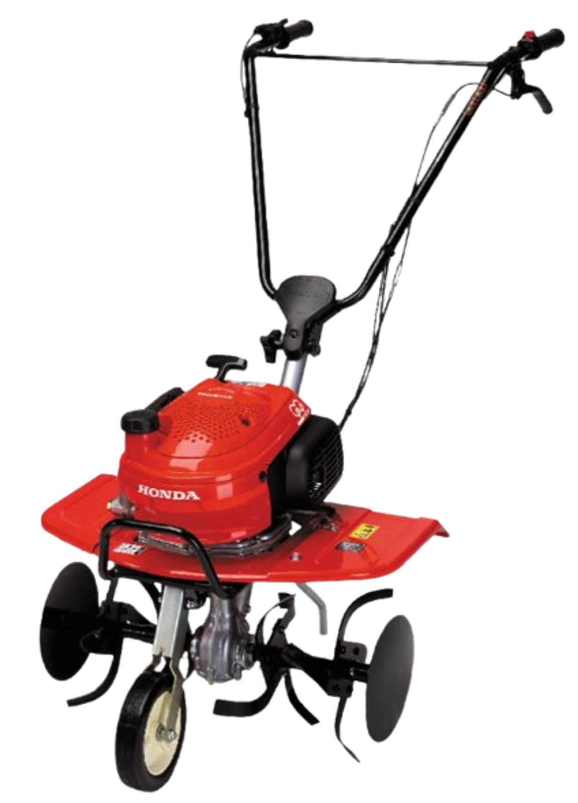 Benzínový kultivátor Honda F 220 je poháněn 4-taktním motorem Honda se zdvihovým objemem 57 cm³, který poskytuje dostatek síly pro různé pracovní nástroje. Tento rotavátor nabízí pracovní záběr 0,55 m a je vybaven bočními ochrannými disky, které zajišťují bezpečnost při práci. Manuální spojka pro zapínání rotavátoru a planetová převodovka zaručují spolehlivý výkon a snadnou manipulaci. Pro maximální komfort je kultivátor vybaven výškově nastavitelnou ovládací rukojetí s ergonomickými úchopy, což usnadňuje jeho ovládání i při delší práci.