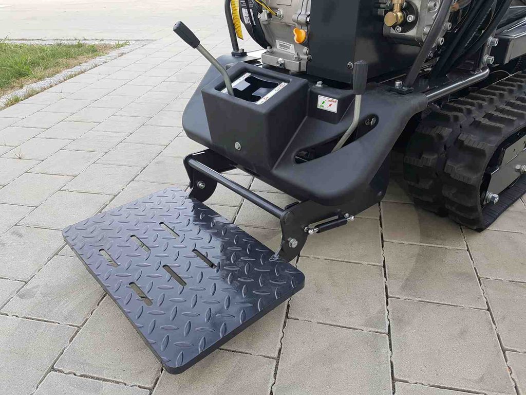 Přes svou kompaktní šířku pouhých 70 cm, dokáže tento minidumper bez obtíží projet úzkými cestami a pohodlně projet do většiny dveří či vrátek. Díky hydraulickému zdvihu se zvýšeným výsypem až do úhlu 90° zvládnete naložený materiál snadno a bez zbytečné námahy vyprázdnit.