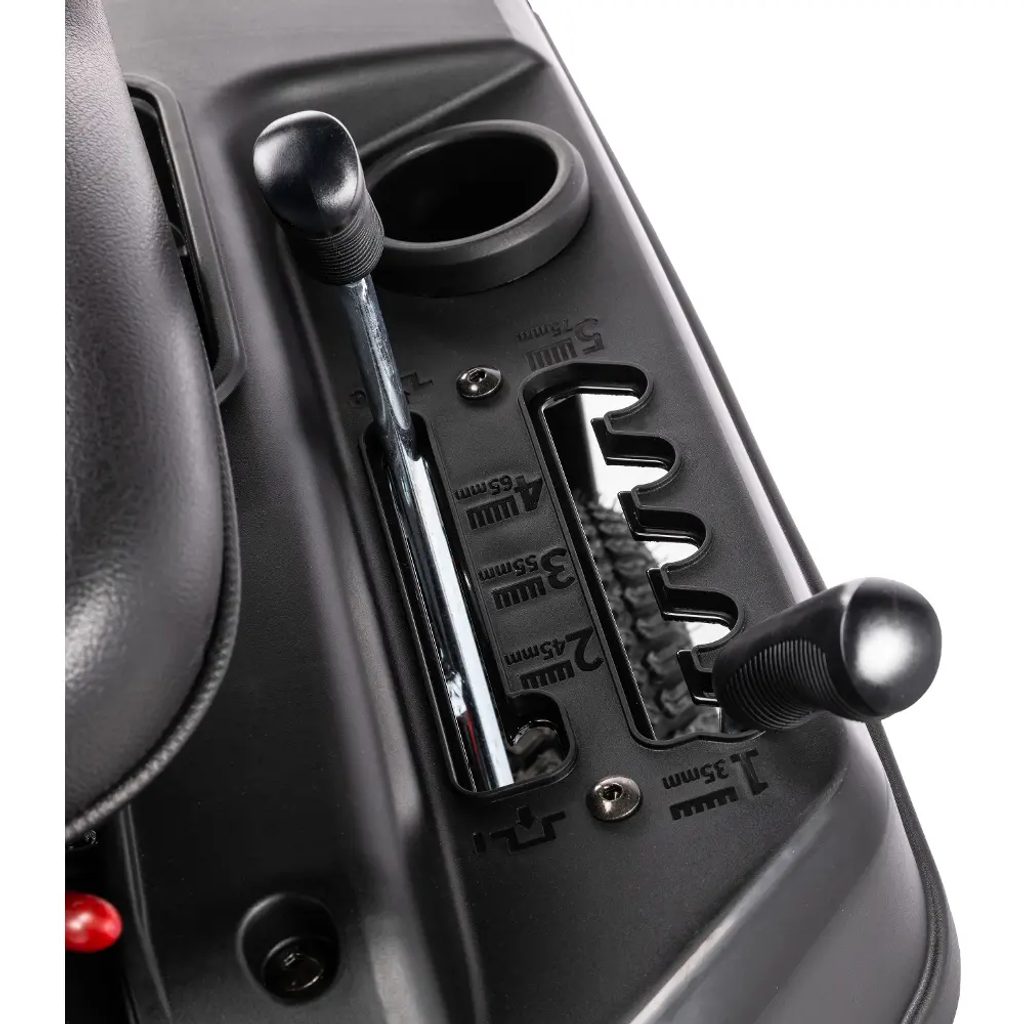 Při práci oceníte čtyři rychlosti vpřed a jednu zpátečku, které umožňují snadno přizpůsobit tempo jízdy aktuálním podmínkám. Komfort při delším používání zvyšuje nastavitelná pozice sedadla a plynulý pojezd, které přispívají k pohodlnějšímu ovládání a lepší kontrole nad strojem.