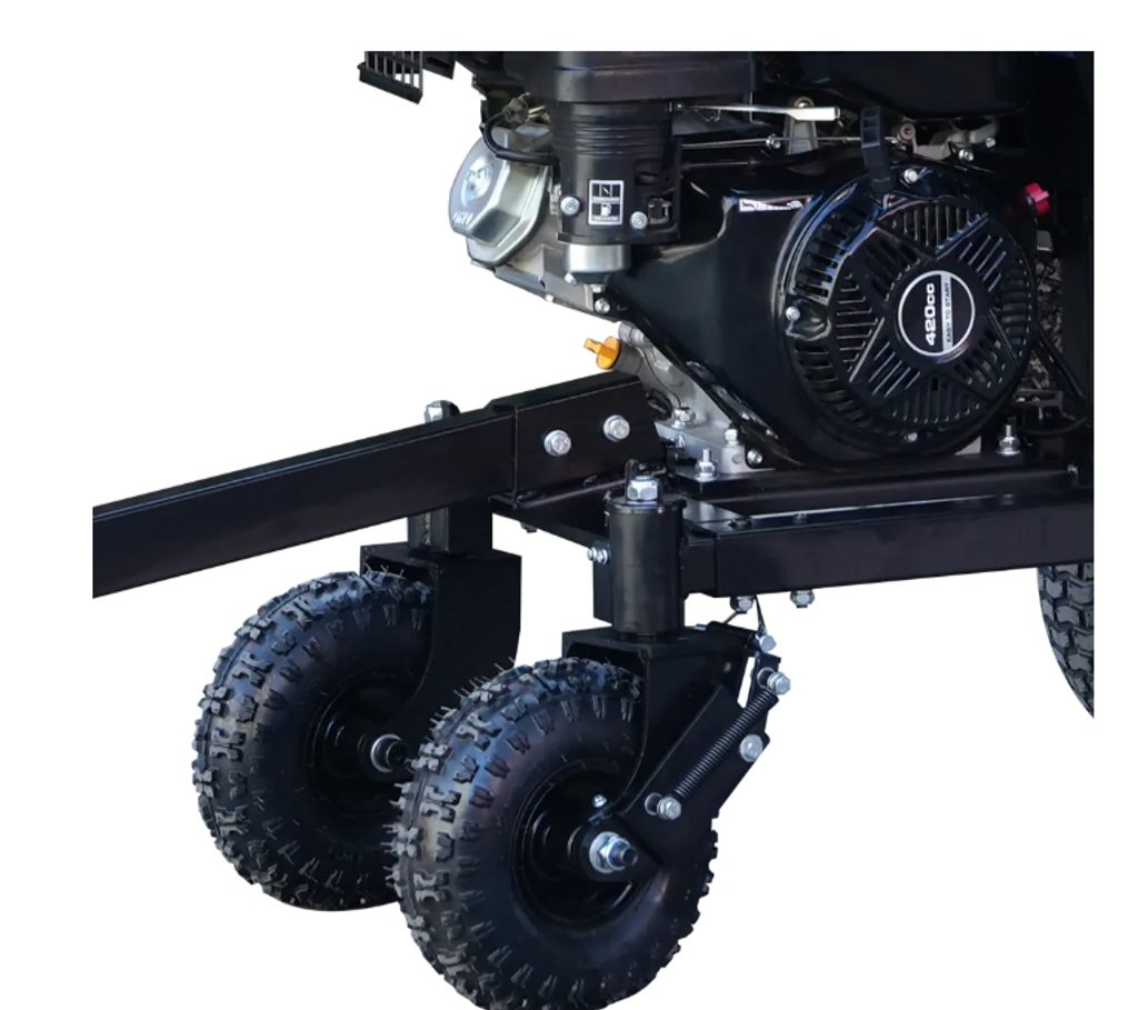 Pro snadnou manipulaci je stroj vybaven praktickým čtyřkolovým podvozkem, kde dvě kola jsou otočná, což zaručuje vynikající manévrovatelnost. Celá konstrukce je postavena na stabilním čtvercovém rámu. Štěpkovací mechanismus je tvořen dvěma hřídelemi, které jsou osazeny třemi noži pro maximální účinnost při zpracování dřeva.