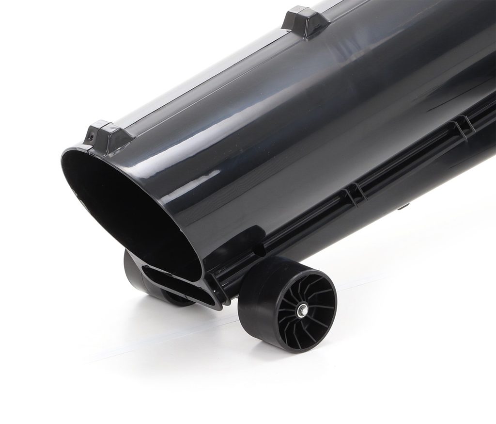 Při práci vám pomůže i pomocné pojezdové kolečko umístěné na konci nasávací trubky a pomocný řemen na rameno, který zvyšuje pohodlí při nošení a manipulaci s nástrojem. Vyprazdnitelný vak s velkým vysýpacím otvorem usnadní údržbu a čištění.