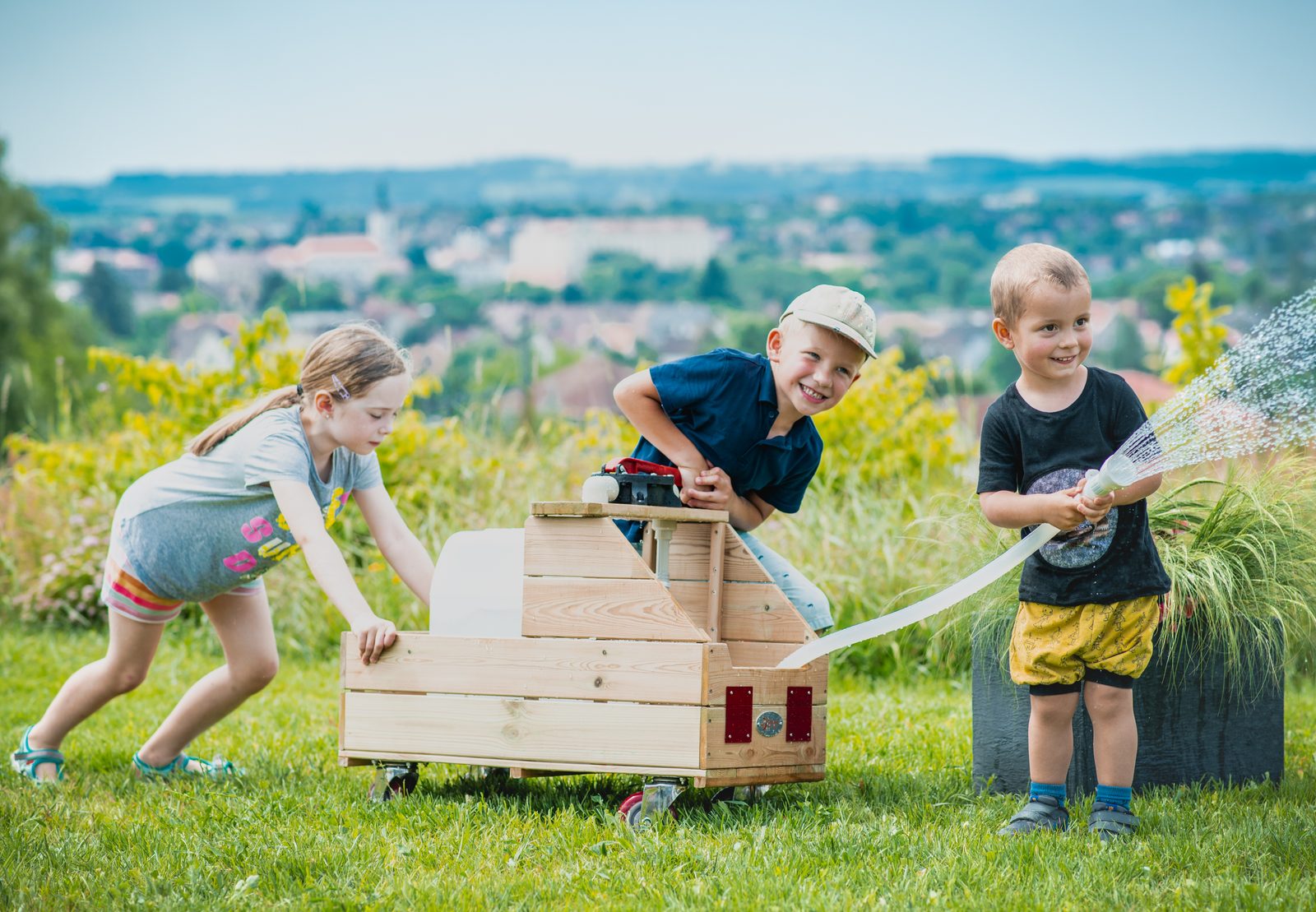 Pokud máte doma malého zkoumálka, nadchne ho například dětský dřevěný vodopád. Voda v něm bude proudit z jednoho koryta do druhého až se nakonec zachytí do velké vany. Vodu tak můžete znovu využít k rozproudění vodopádu nebo se v ní zchladit. Taková hračka umí rozvíjet logické myšlení, motoriku i představivost. Srdce malého zahradníka s duší hasiče si získá dřevěný vozík na vodu. Díky ohebné hadici, bude moci zalévat květiny nebo zeleninové záhony. A ta radost ze stříkající vody? K nezaplacení!