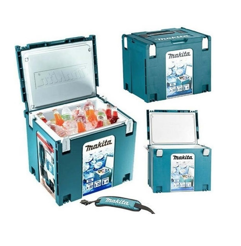 Praktický chladící box z řady CoolMbox.Pro uchování v chladu například 30 350 ml plechovek nebo 15 (vertikálně umístěných) 20 (horizontálně umístěných) 500 ml lahví. Do CoolMboxu je také možné umístit 2 litrové lahve, z nichž 4 se vejdou. Lze propojit s Makita Mboxy. Chlazení pomocí kostek ledu nebo chladicích prvků (nejsou součástí dodávky).