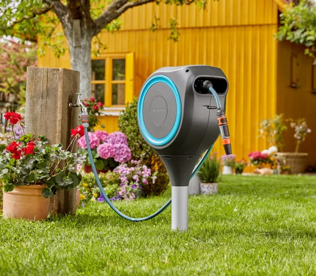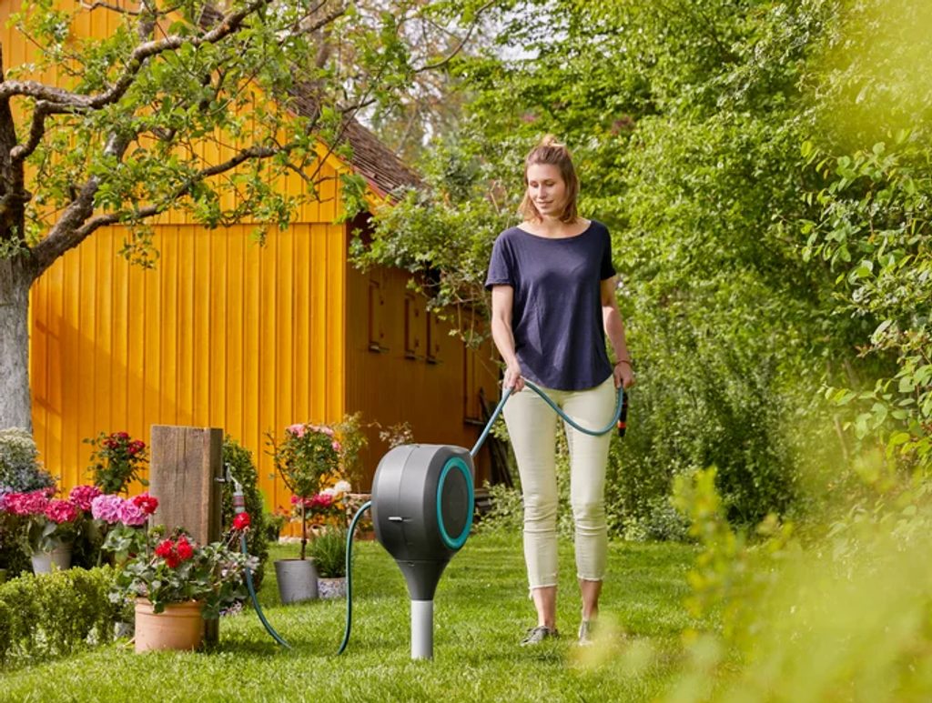 Díky modernímu designu lze hadicový box otočit o 360°, čímž se dostanete do všech koutů vaší zahrady. Při zavlažování sleduje box na hadici vaše pohyby, a tím zabraňuje zauzlení nebo zamotání hadice.
