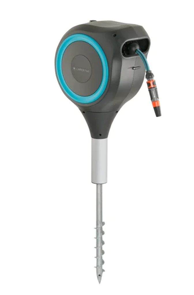 Box na hadici Gardena RollUp S 18604-20 stojí na pevném kovovém hrotu, takže jej můžete nainstalovat kdekoliv na vaší zahradě bez poškození zdi. Zemnící hrot se šroubuje do země pomocí montážní tyče, a je proto extrémně stabilní.