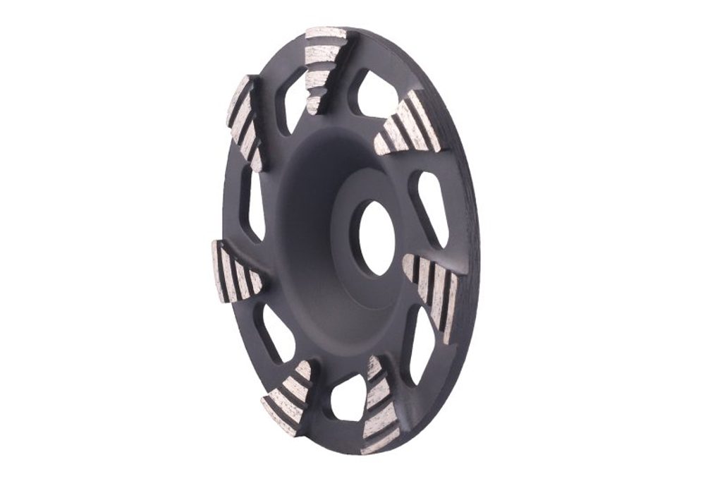 Profesionální brusný kotouč s diamantovými segmenty pro broušení, betonu, lepidel a dalších zdících materiálů, žuly, kamene. Tvar segmentu umožňuje efektivní a rychlé broušení větších ploch, drážky umožňují odvod obroušeného materiálu a zabraňují zbytečnému přehřívání při broušení .