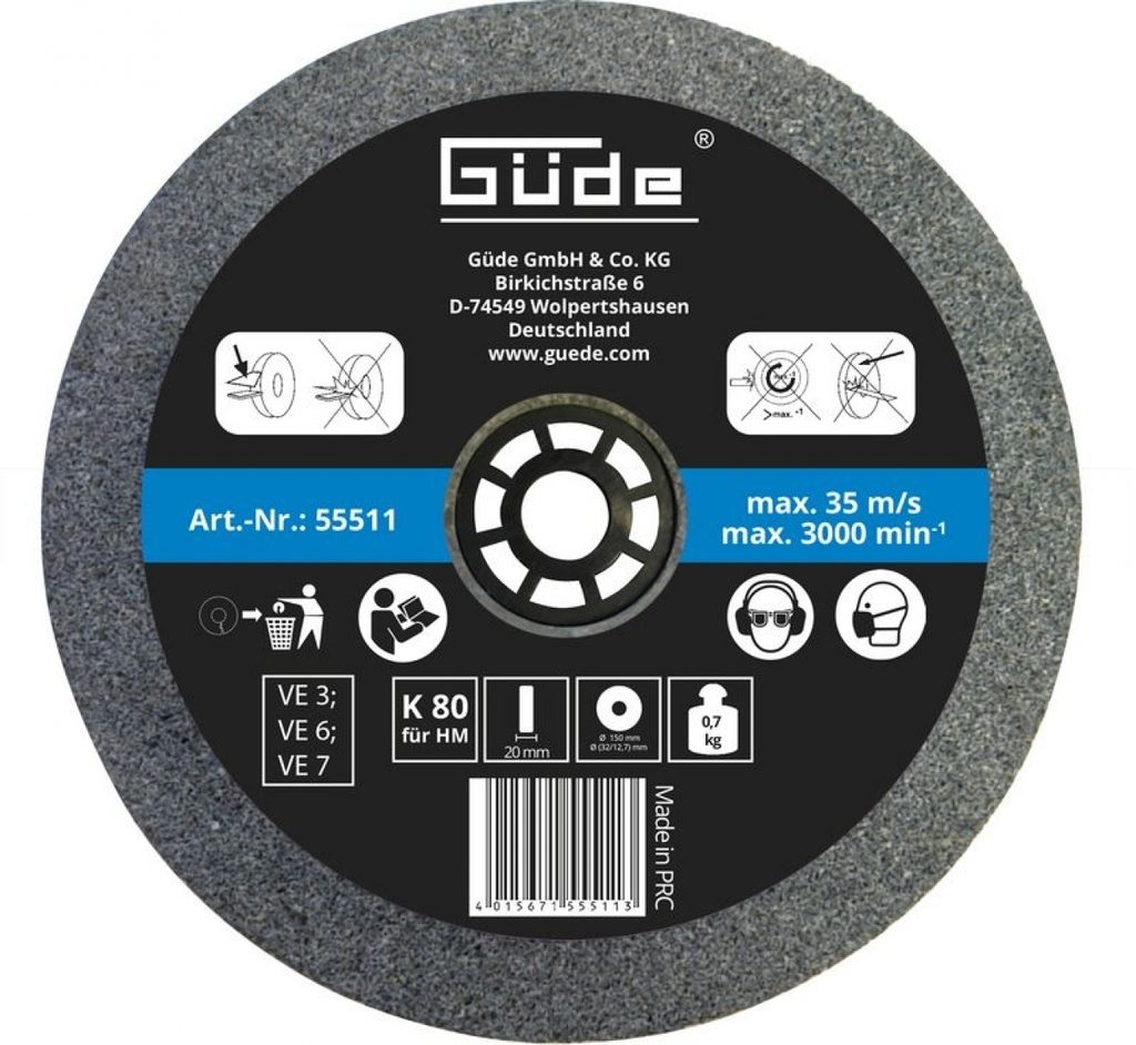 Korundový brusný kotouč, zrnitost K80 s integrovaným adaptérem na průměr upnutí 16 mm. Kompatibilní s dvoukotoučovými bruskami GNS 200/150 (40350), GDS 150 K (55108), GDS 150 (55119), GDS 150 L (55121), GKS 150-25 (55223).