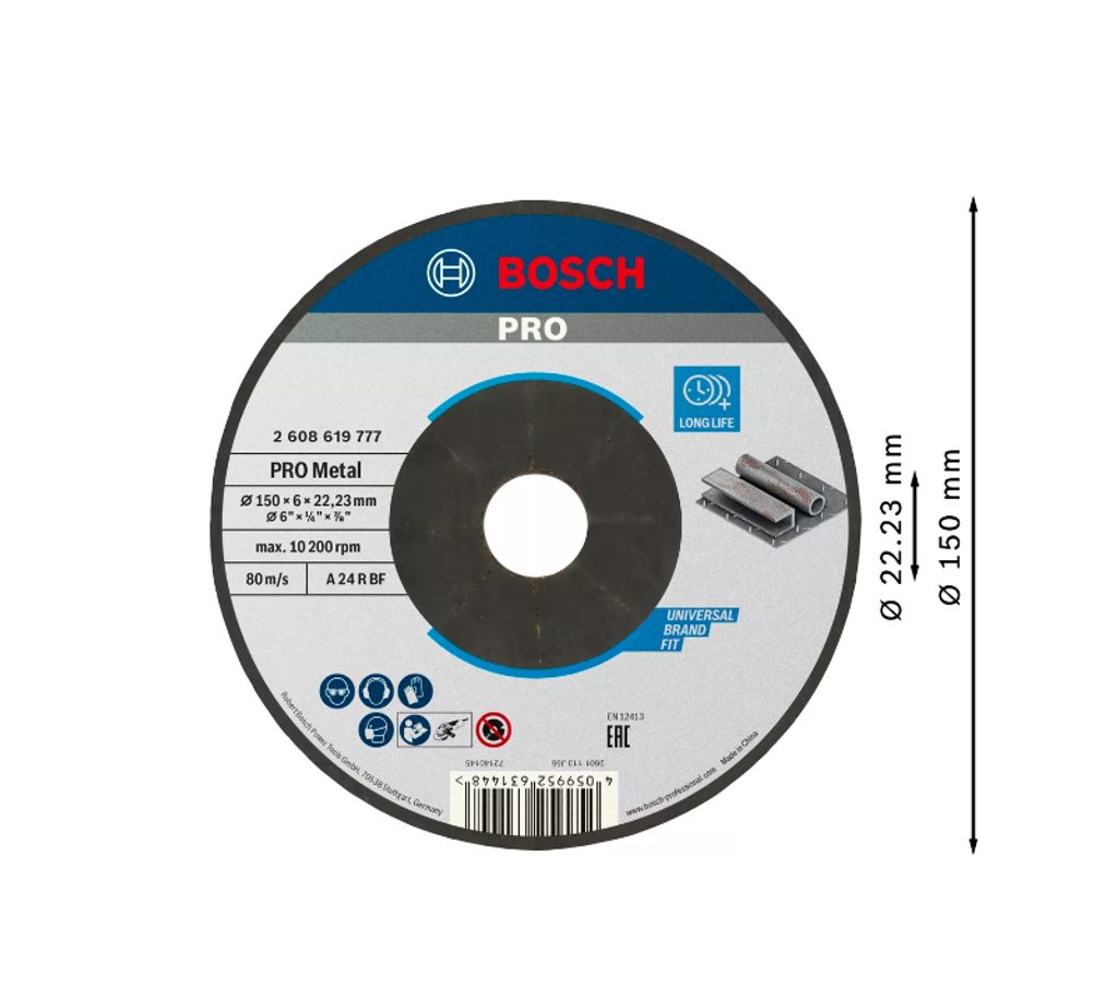 Hrubovací kotouč na kov Metal Bosch výkonnostní třídy PRO je navržen pro efektivní broušení kovu a oceli. Díky odolnému korundovému zrnu poskytuje stabilní a nabízí dlouhou životnost.