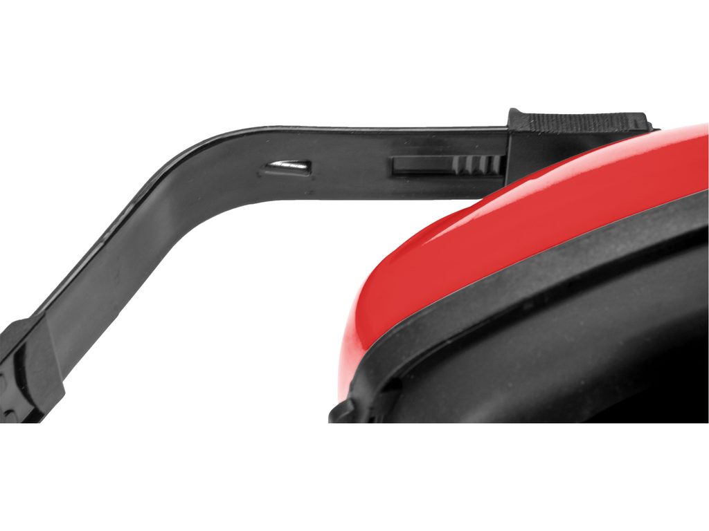 Chrániče sluchu mají univerzální velikost. Pozici mušlí je vůči hlavovému mostu výškově nastavitelná.