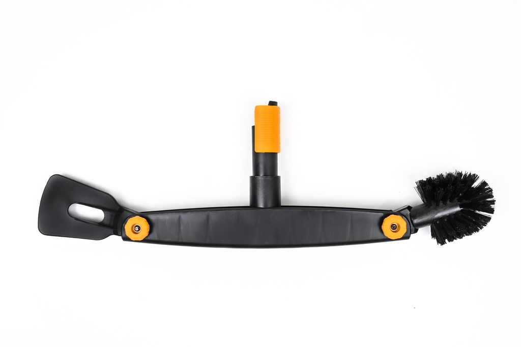 Čistič okapů Fiskars QuikFit je praktický nástroj, který kombinuje kartáč a škrabku v jednom. Tato důmyslná kombinace umožňuje snadné a efektivní čištění okapů, a to i na těžko dostupných místech. Díky nastavitelnosti sklonu kartáče si můžete přizpůsobit jeho polohu tak, aby byla práce co nejpohodlnější a nejbezpečnější, a to vše přímo ze země.