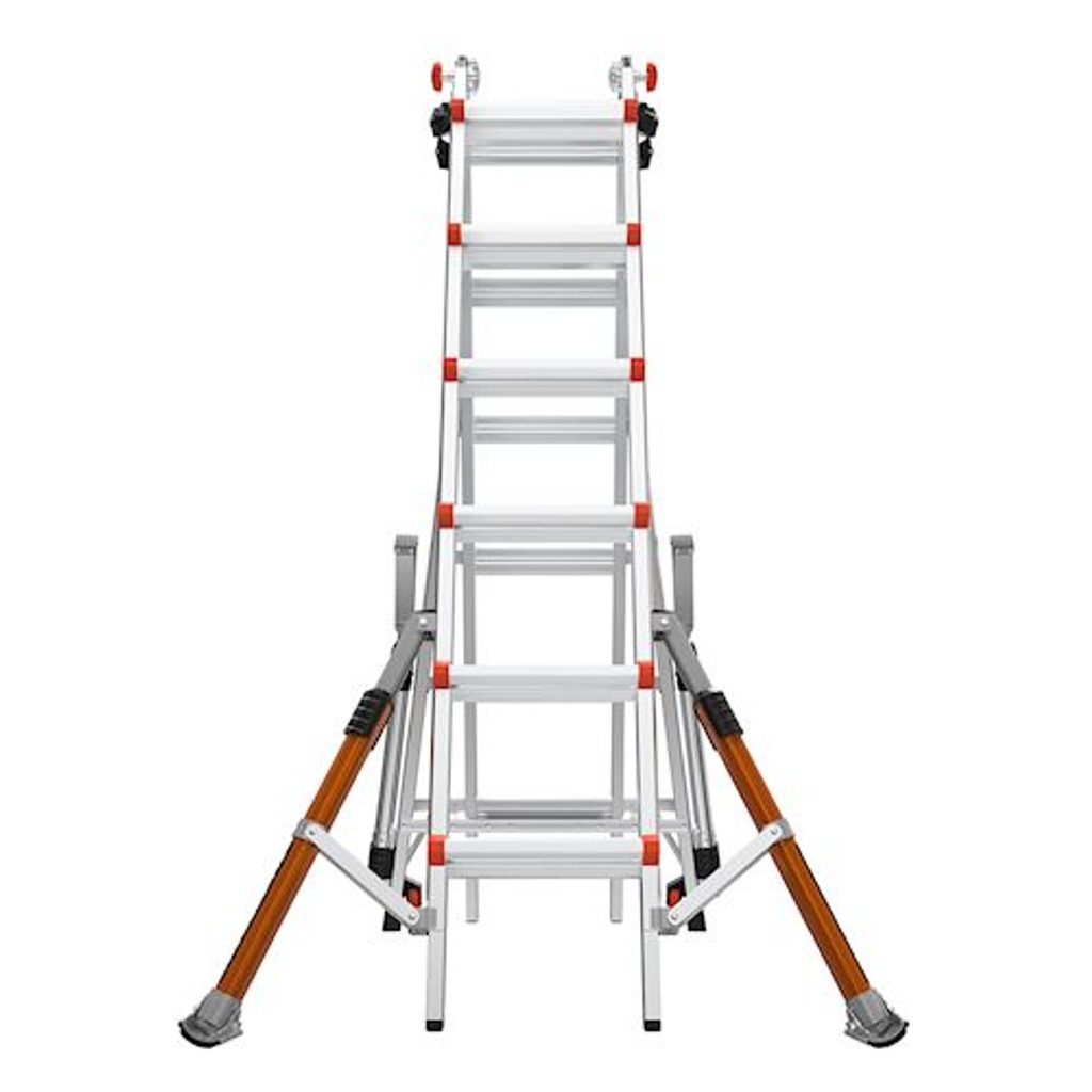 Conquest PRO All-Terrain nabízí sedm různých možností konfigurace v rámci jednoho žebříku. Jednoduchými úpravami lze vytvořit například dva samostatné A žebříky díky produktu art. č. 26999 (kozlíkový držák). Je možné jej použít jako kozu nebo lešení s teleskopickou plošinou PLANKS*. Tímto způsobem získáte jeden menší žebřík s různými možnostmi konfigurací a dva samostatné žebříky v poloze opření.