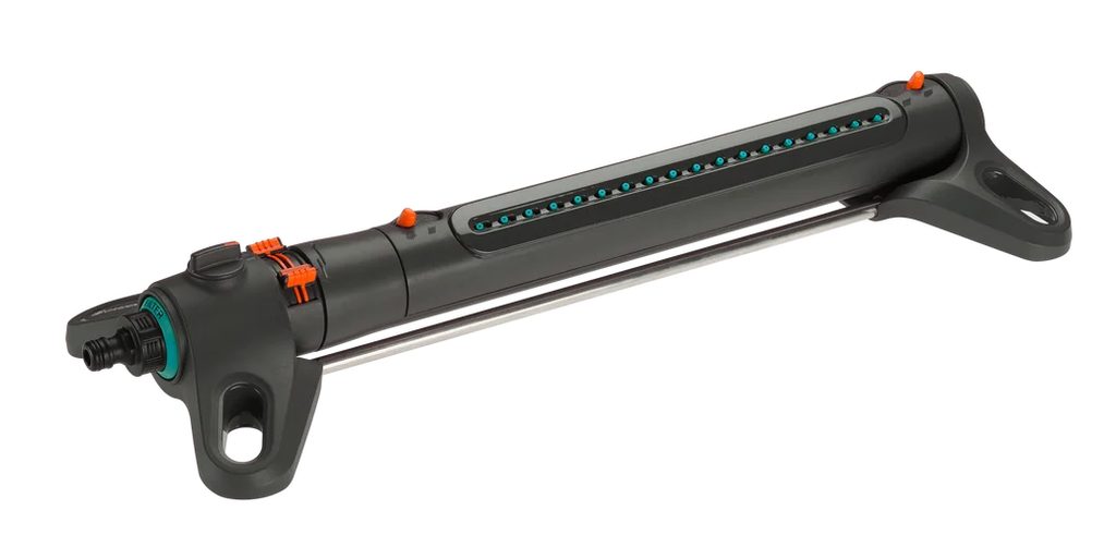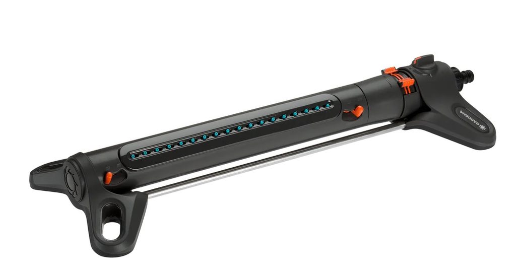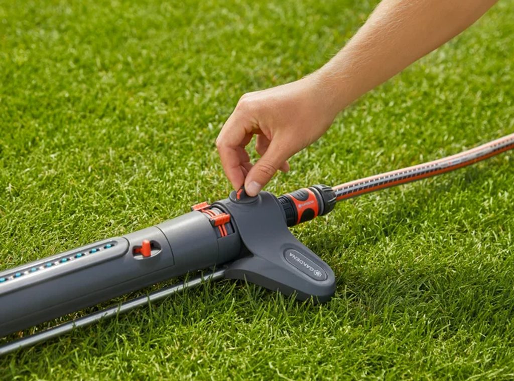 Zavlažovač čtyřplošný Gardena AquaZoom L je navržen pro větší zavlažovací plochy o velikosti 28 až 350 m². Ovládání zavlažovače AquaZoom L je jednoduché a intuitivní. Pomocí posuvníků individuálně nastavíte dosah (7–21 metrů), šířku postřiku (4–17 metrů) a průtok vody přesně tak, jak to pro váš trávník potřebujete. Můžete dokonce zavlažovat pouze na jedné straně, což znamená, že voda se dostane pouze tam, kam chcete.