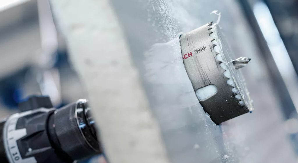 Děrovka Bosch výkonnostní třídy PRO je navržena pro dlouhou životnost a efektivitu při řezání otvorů v různých materiálech.