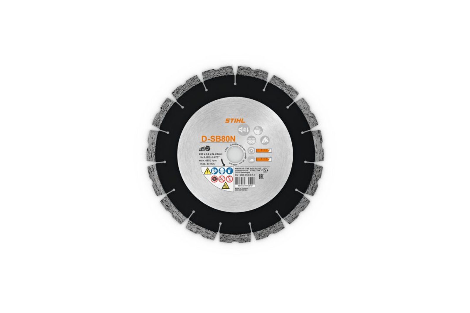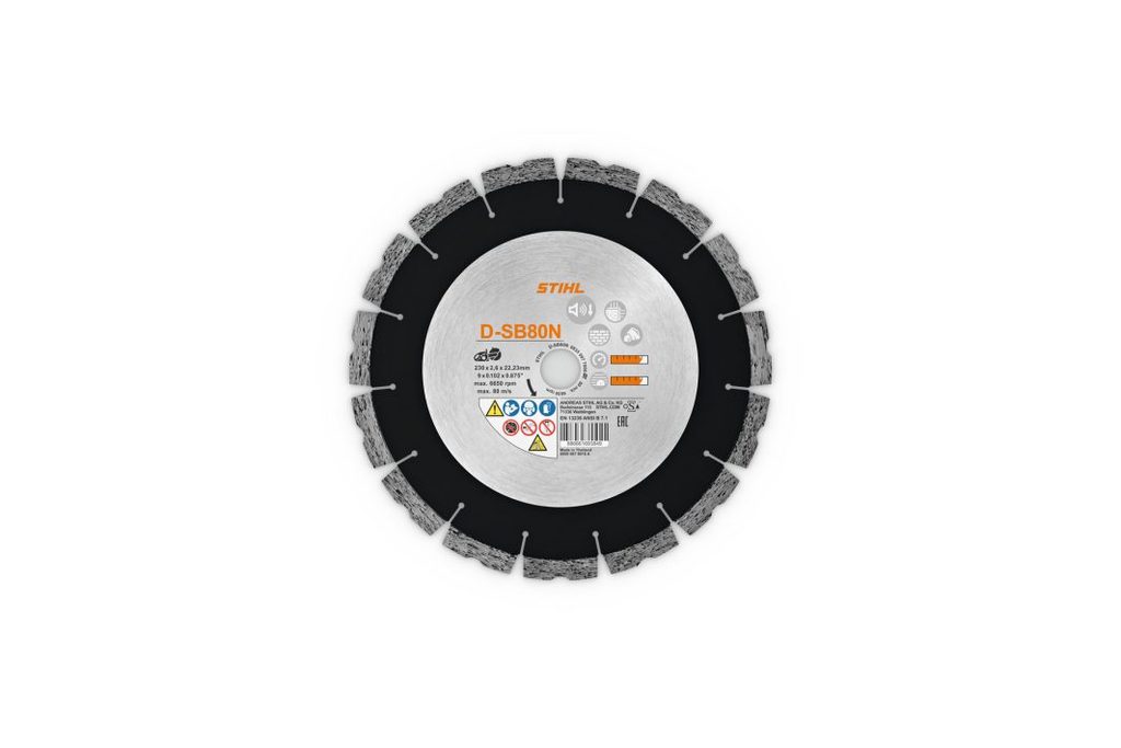 Diamantový rozbrušovací kotouč STIHL D-SB80N 230 (Ø 230 mm) je univerzální volba pro řezání na stavbách, pokud chcete vysoký řezný výkon, přesnost a dlouhou životnost. Kotouče STIHL jsou navržené tak, aby byly optimálně přizpůsobené rozbrušovacím strojům STIHL – jsou velmi tuhé, odolné a drží stabilní řez i při náročnějším nasazení.