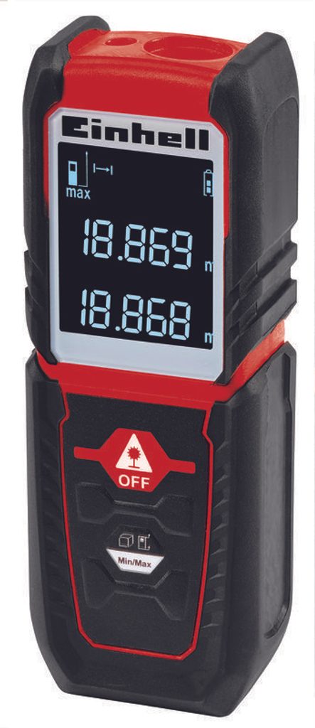 Laserový dálkoměr Einhell je malý, praktický kapesní přístroj pro snadné a přesné měření vzdáleností až do 25 metrů. Pomocí praktického měřicího přístroje lze obratem ruky měřit vzdálenosti a vypočítat plochy a objemy. Je ideální pro vyměření ploch v novostavbách, při sanačních pracích a renovacích, při utváření zahrady nebo ve vlastní dílně pro přesné měření obrobků.