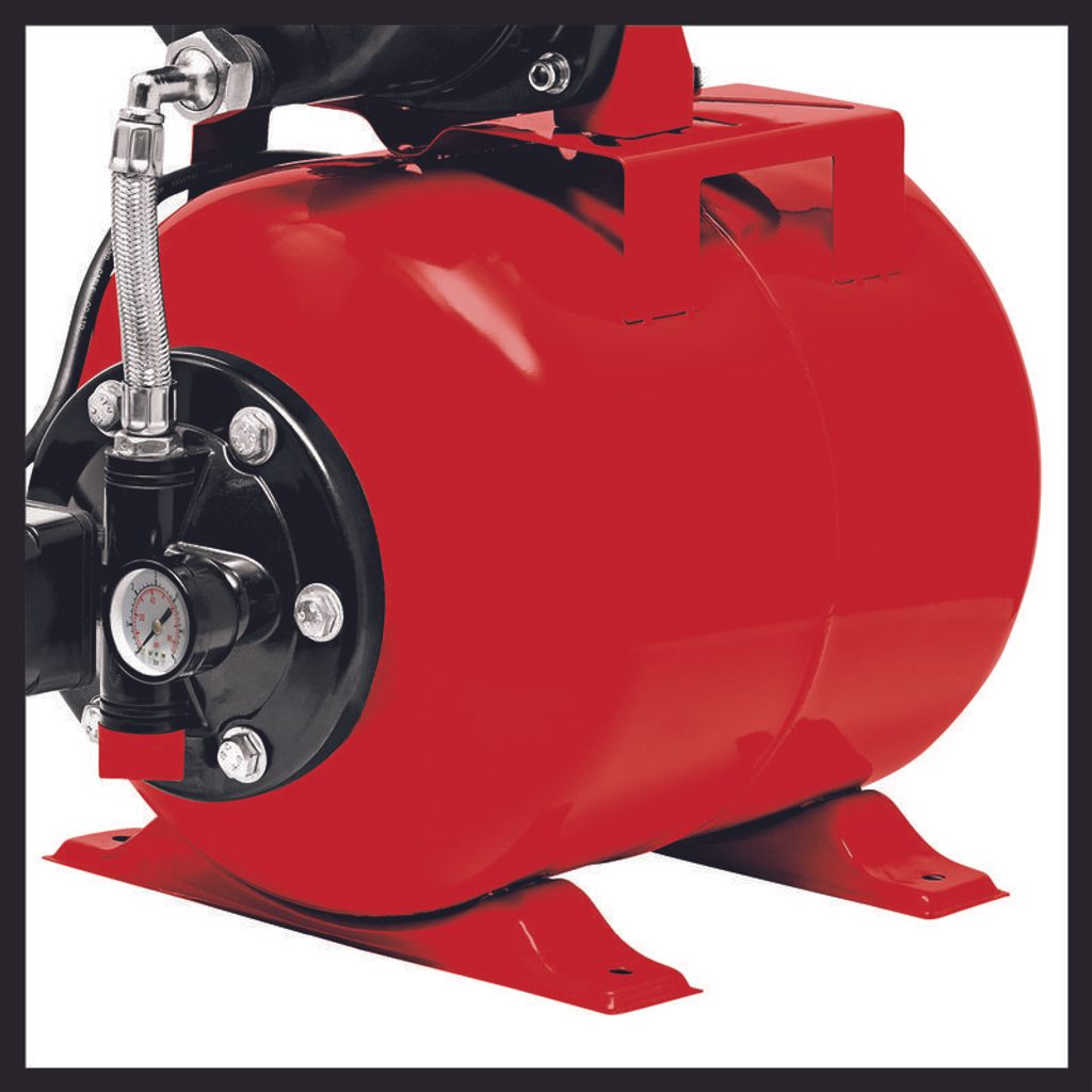 Tlakový kotel vodárny GC-WW 6538 poskytuje kapacitu 20 litrů, takže čerpadlo nenabíhá při každém odběru vody. Teprve při poklesu tlaku se čerpadlo automaticky zapne pomocí integrovaného tlakového spínače a po dosažení max. tlaku se opět deaktivuje.