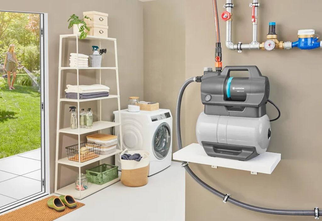 GARDENA domácí vodárna 3800 Silent je ideálním řešením pro efektivní využití užitkové vody a udržitelné zásobování domácnosti i zahrady. Umožňuje využívat vodu z nádrží, jako jsou dešťové sudy, studny nebo cisterny, například pro splachování toalety či provoz pračky.