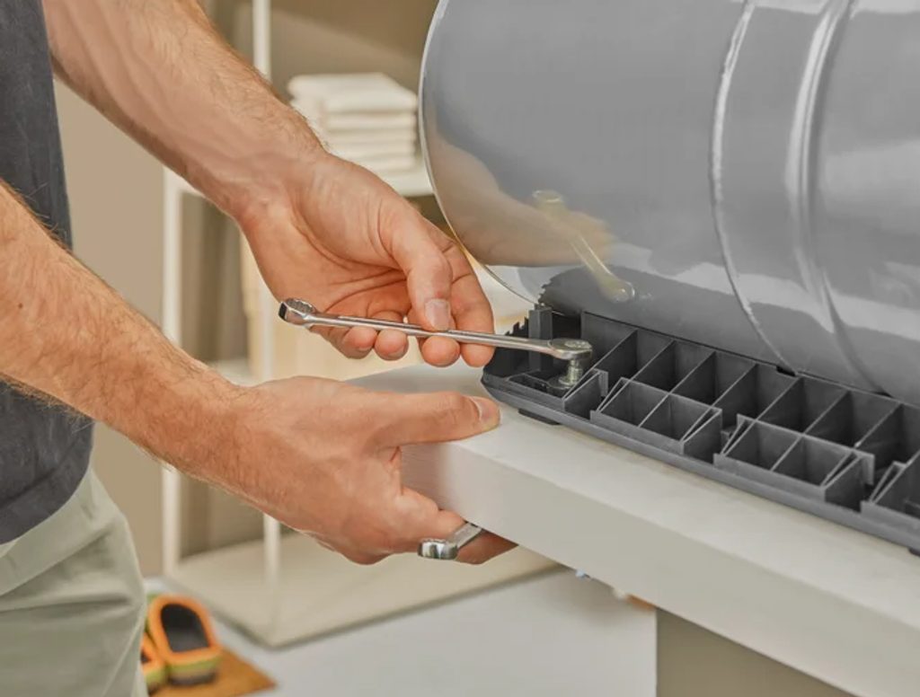 Čerpadlo vyvinuté v Německu má plastové tlumicí pouzdro, které snižuje hladinu hluku. Gumové nožičky zajišťují pevnou stabilitu a nízké vibrace během provozu. Základnu je možné bezpečně a nenápadně přišroubovat k podlaze.