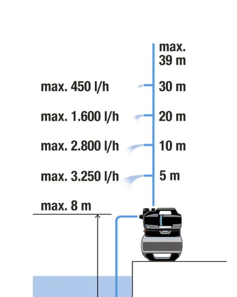Tlakové čerpadlo nabízí dopravní výšku až 39 metrů (3,9 bar) a průtok 3800 litrů za hodinu, což z něj činí perfektní volbu pro domácí vodárnu. Navíc s minimální spotřebou energie pouhých 600 wattů je energeticky úsporné a šetrné k vaší peněžence.
