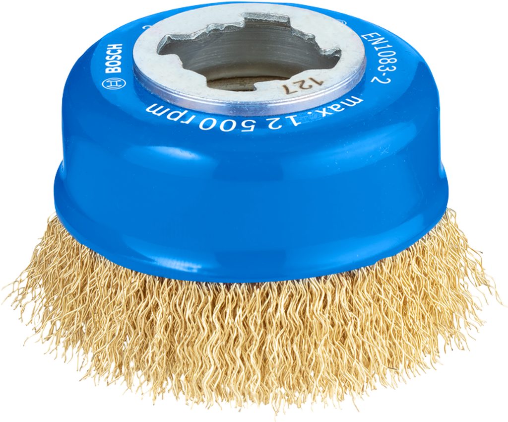 Hrncový drátěný kartáč – zvlněný drát, mosazný povrch, vhodný pro lehké až středně náročné čištění středně velkých až velkých kovových a neželezných povrchů, například k odstraňování povlaků, nátěrů a rzi, čištění desek bednění a obkladů, zdrsňování, matování a podobně.