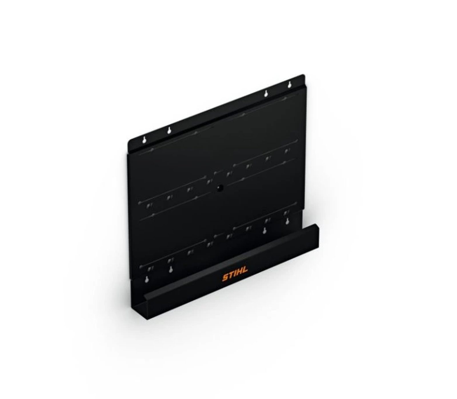 Nástěnný držák STIHL CR 6 je ideální pro profesionály v zahradnictví nebo komunálních službách. Tento držák umožňuje připojit až 8 standardních nabíječek STIHL nebo 6 rychlonabíječek STIHL a udržet je přehledně uspořádané, například na stěně dílny.