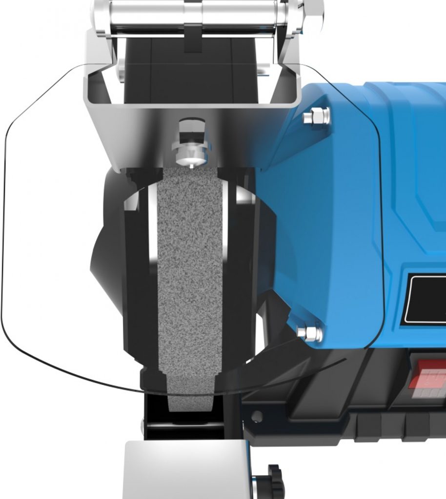 Klidný chod bez vibrací, dlouhá životnost (hřídel motoru Ø 16 mm s kvalitními kuličkovými ložisky), karborundové brusné kotouče střední zrnitosti K 36 a K 60. Konstrukce: vylehčená kovová skříň, nastavitelné opěrky obrobku, ochranné kryty proti jiskrám, robustní podstavec vč. otvorů pro montáž na pracovní desku.