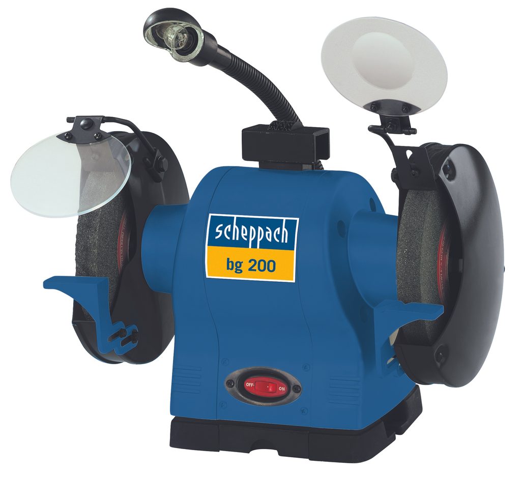 Dvoukotoučová bruska s indukčním motorem vhodná k broušení nástrojů nebo k odstraňování povrchových vrstev u kovových materiálů potřebujete výkonnou brusku, jako je například model BG 200 pod značkou Scheppach classic.