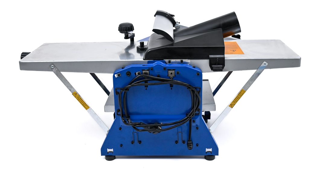 Na přesnosti opracování se podílí i velmi kvalitní hoblovací stůl a přesná hoblovací zarážka s možností nastavení až do 45 st. Bezpečnostní spínač a možnost odsávání je u strojů Scheppach samozřejmost. Stabilitu stroje i při obrábění delších trámů zajišťují čtyři kovové nohy opatřené pryžovými protiskluzovými podložkami.