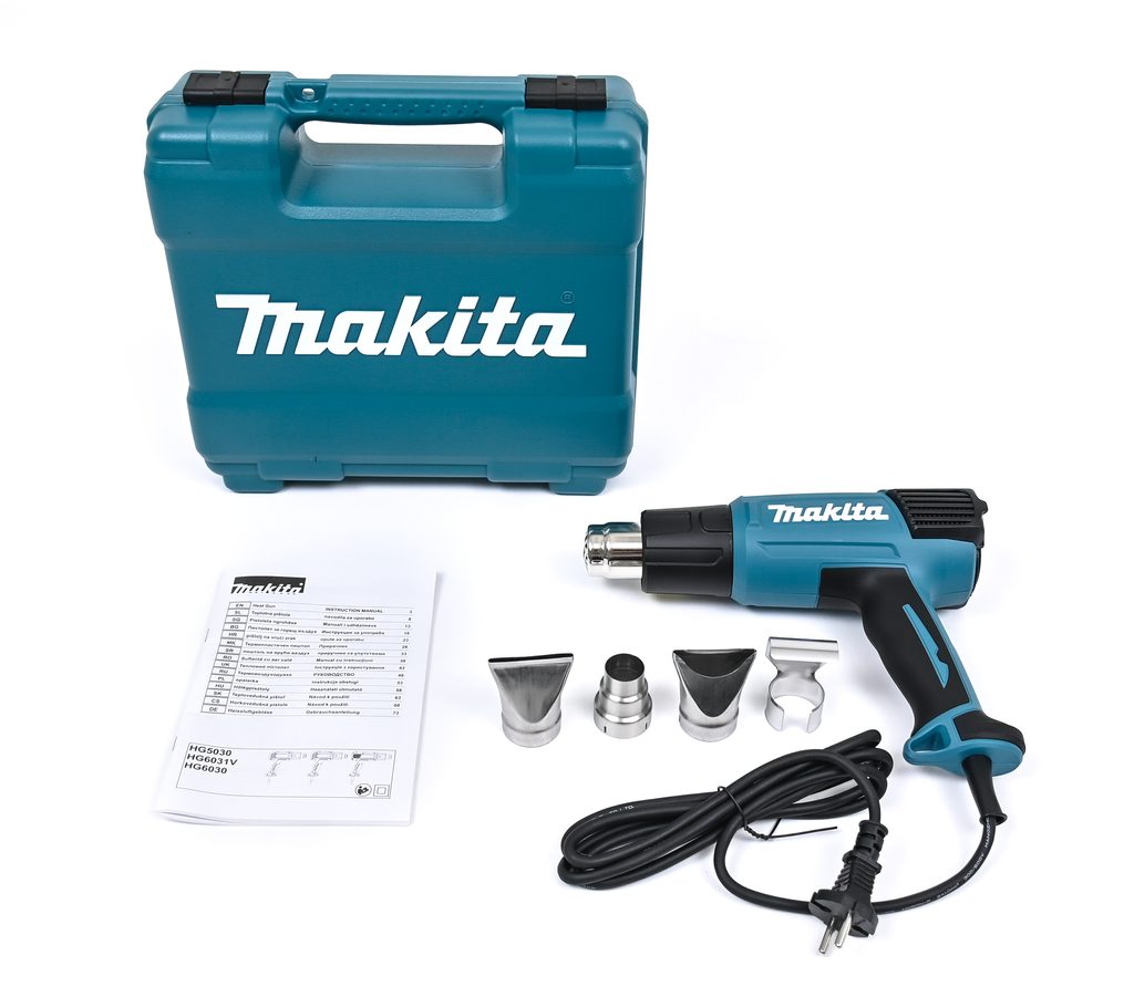Lehká elektrická horkovzdušná pistole Makita HG6031VK vhodná na ohřívání, rozpouštění, odstraňování starých nátěrů nebo dezinfekci klecí. Disponuje funkcí ochrany stroje proti přehřátí.