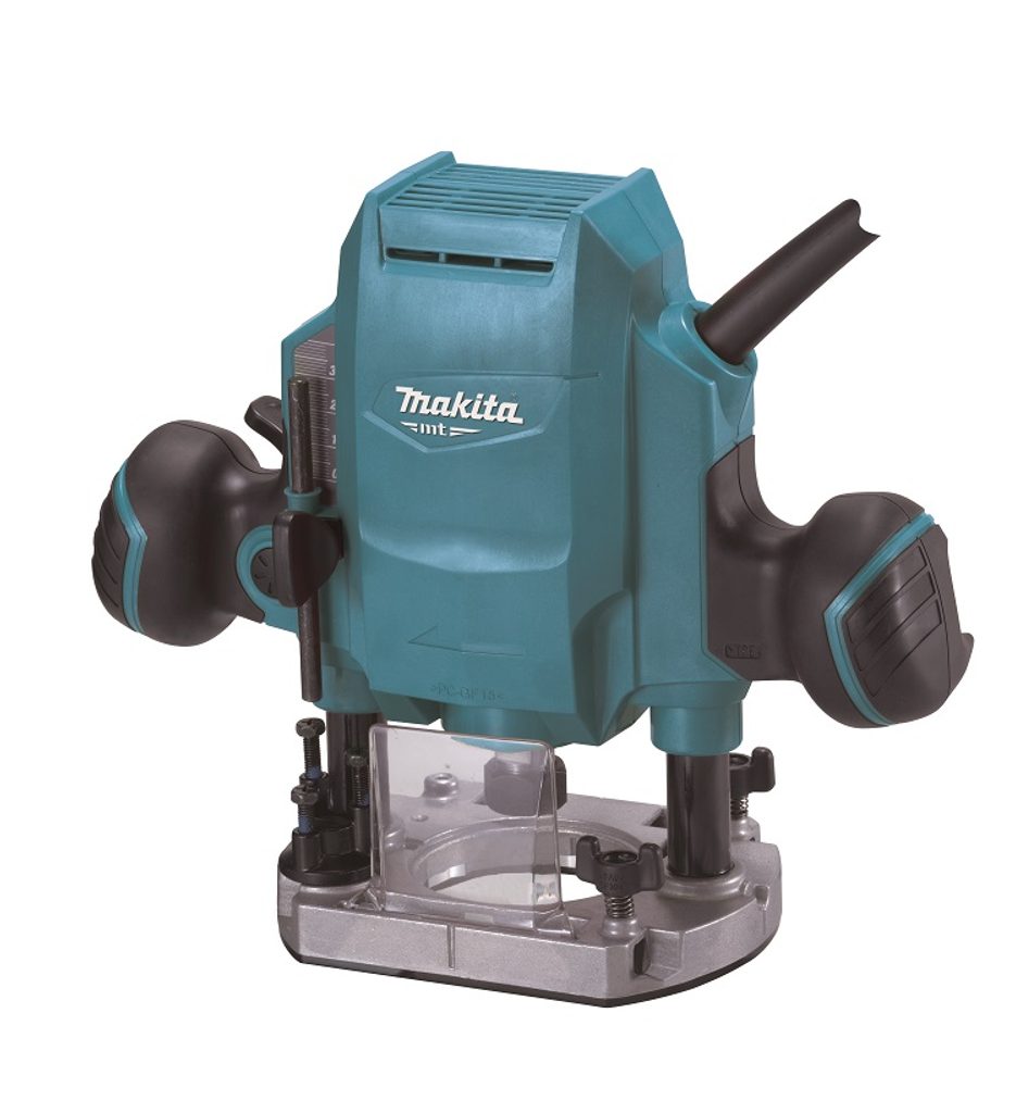 Elektrická horní frézka Makita MT M3601B je univerzální frézka pro přesné drážkování, ofrézování hran a práce se šablonami. Nastavení hloubky je řešené ve třech stupních s dobře čitelnou stupnicí a rychloupínací páčka umožňuje rychlé a přesné seřízení podle typu materiálu a záběru.