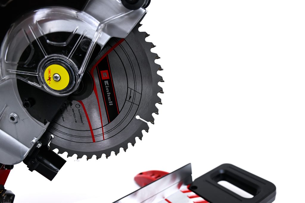 Stolová vložka je vybavena praktickou stupnicí pro odečítání šířky obrobku. Vysoce kvalitní přesný pilový kotouč s karbidovými hroty zaručuje čisté a silné výsledky řezání.