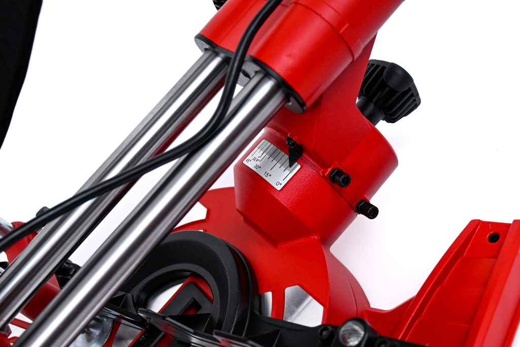 U nejběžnějších úhlů u kutilských prací jsou na otočném stole k dispozici aretační polohy pro rychlé a spolehlivé nastavení úhlu. K dispozici jsou snadno čitelné stupnice pro úhly a šířky. Kotouč pily může být také nakloněn doleva pro pokosové řezy. Šířka záběru je až 305 milimetrů s nastavením 90 ° a až 210 milimetrů s úhlem 45 °.