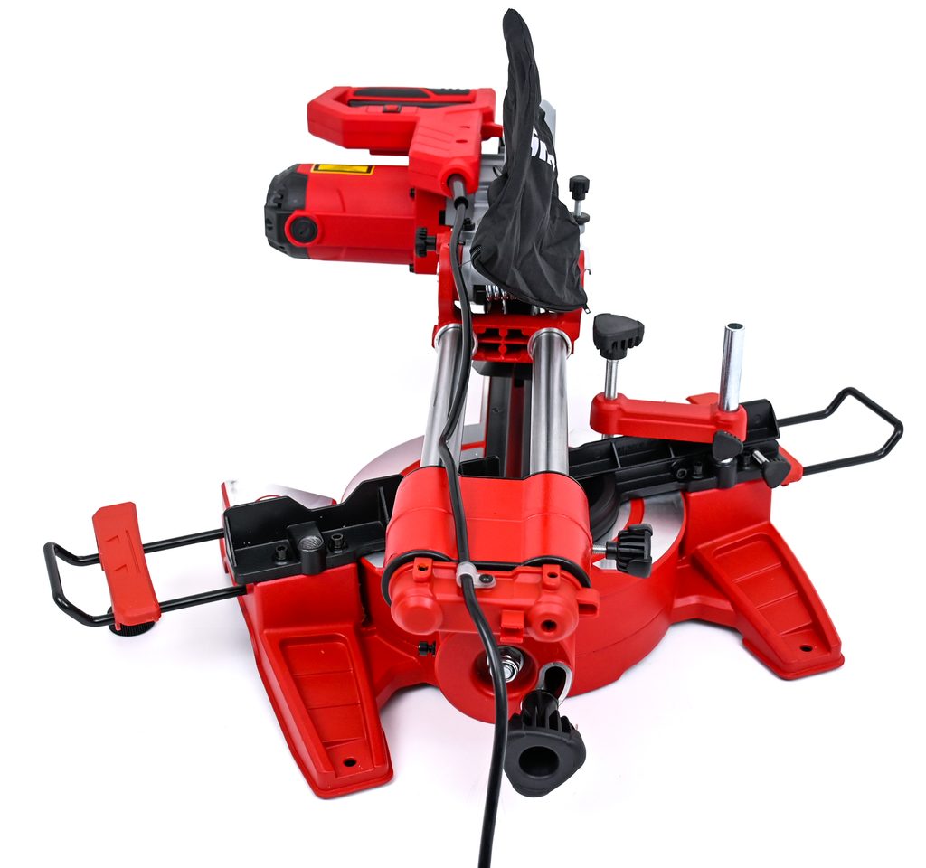 Integrovaný řezací laser je obrovskou pomocí při práci. Vlevo a napravo jsou umístěny podpěry pro delší obrobky a pro zajištění obrobků je k dispozici praktické upínací zařízení. Vysoce kvalitní pilový kotouč z tvrdokovu poskytuje dokonalé řezy. Pro snazší výměnu pilového kotouče je použit zámek vřetena.