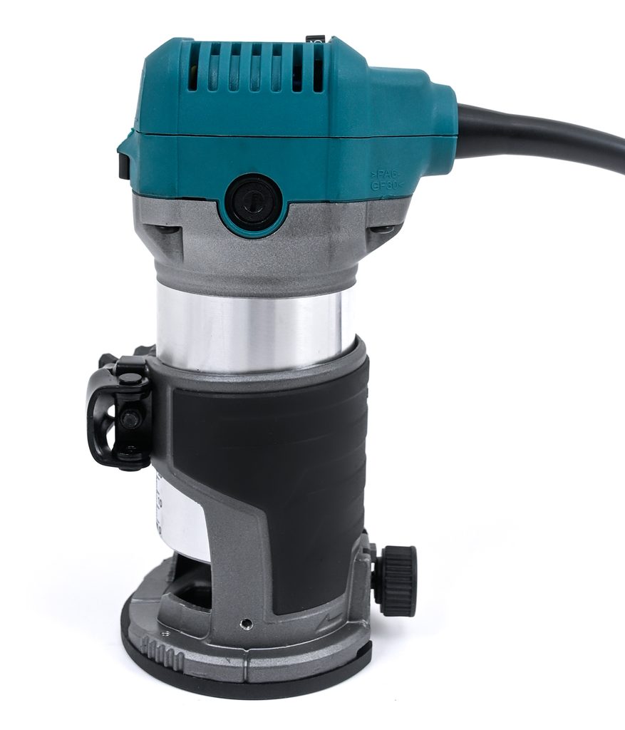 Pro přesnou práci je zanořovací základna vybavena hloubkovou zarážkou s možností přesného posunu v řádu desetin milimetru. Při práci s tvrdým dřevem můžete využít revolverovou zarážku s jejíž pomocí si rozdělíte frézovanou hloubku do několika vrstev a postupně je budete odebírat.