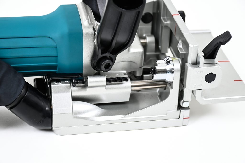 Lamelovací (štěrbinová) frézka pro všechny komerční typy spojníků. Má možnost nastavení přesné hloubky frézování - 8, 10, 12.3, 13, 14.7, 20 mm.